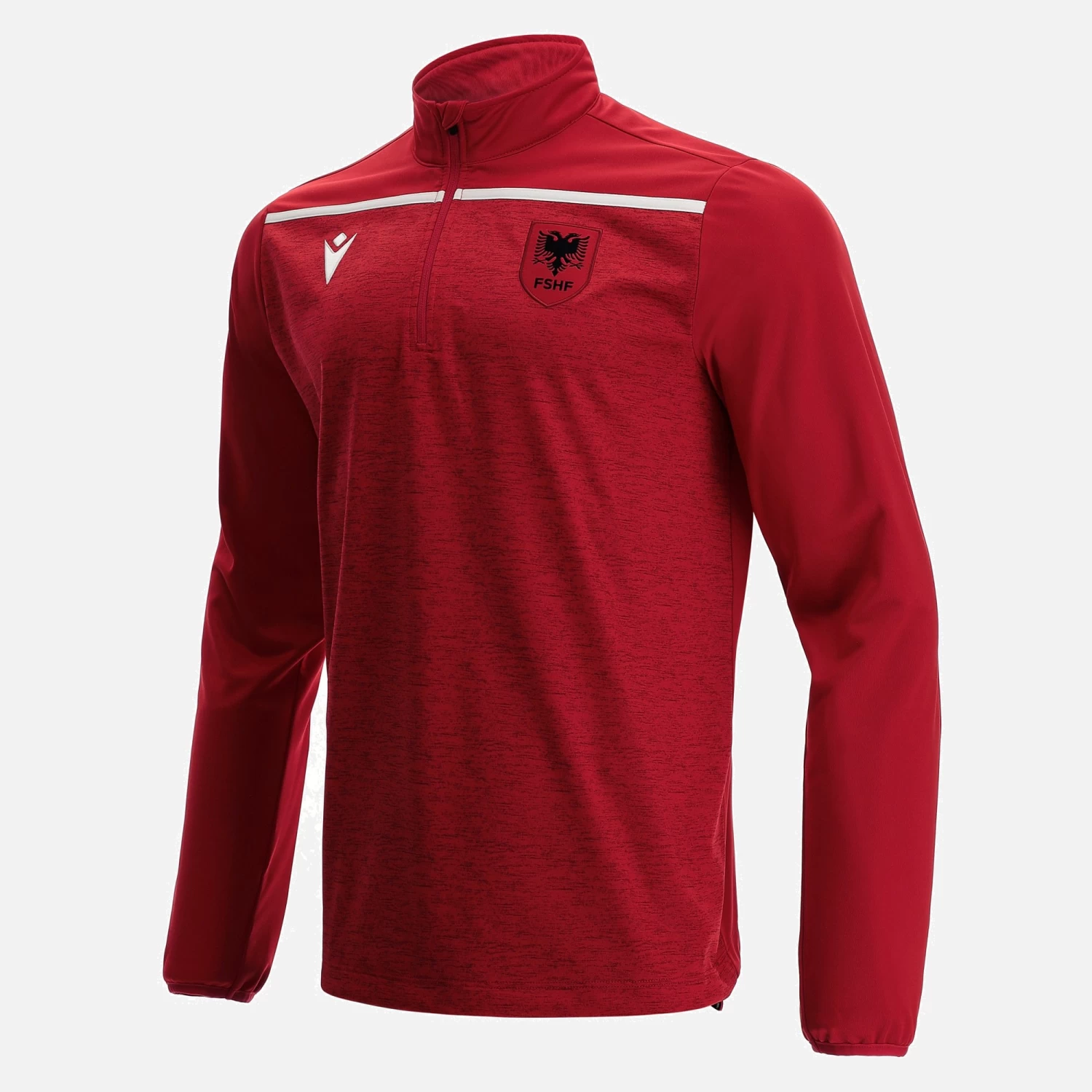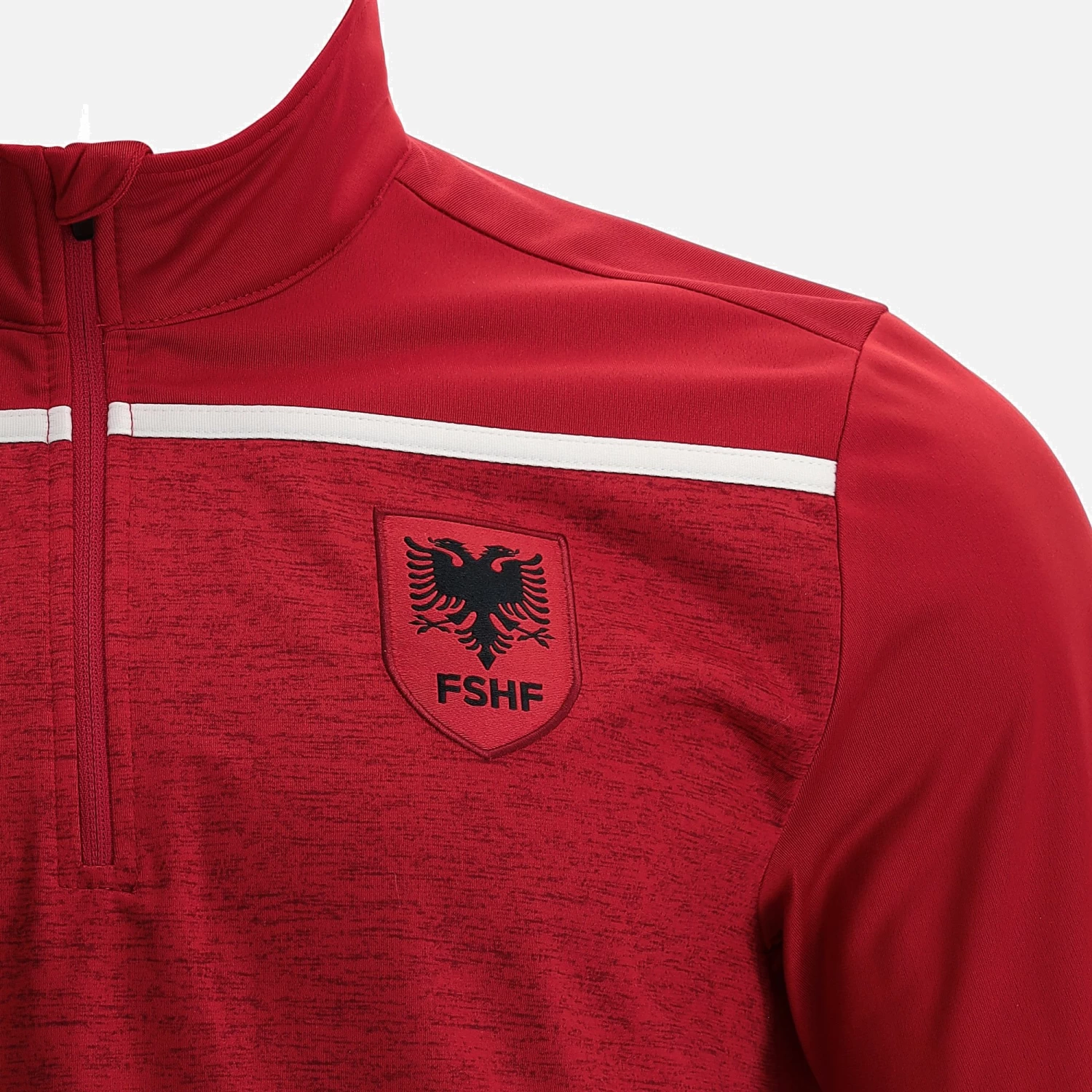 Albania national football squad 2020/21 training top. Featuring the official team colours, the garment is embellished with a shield badge on the left breast and ‘Albania’ in white on the back, just below the collar.