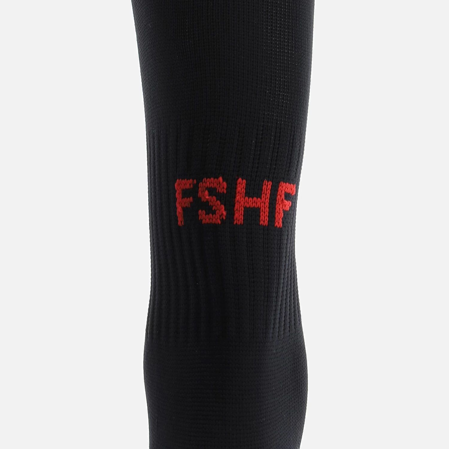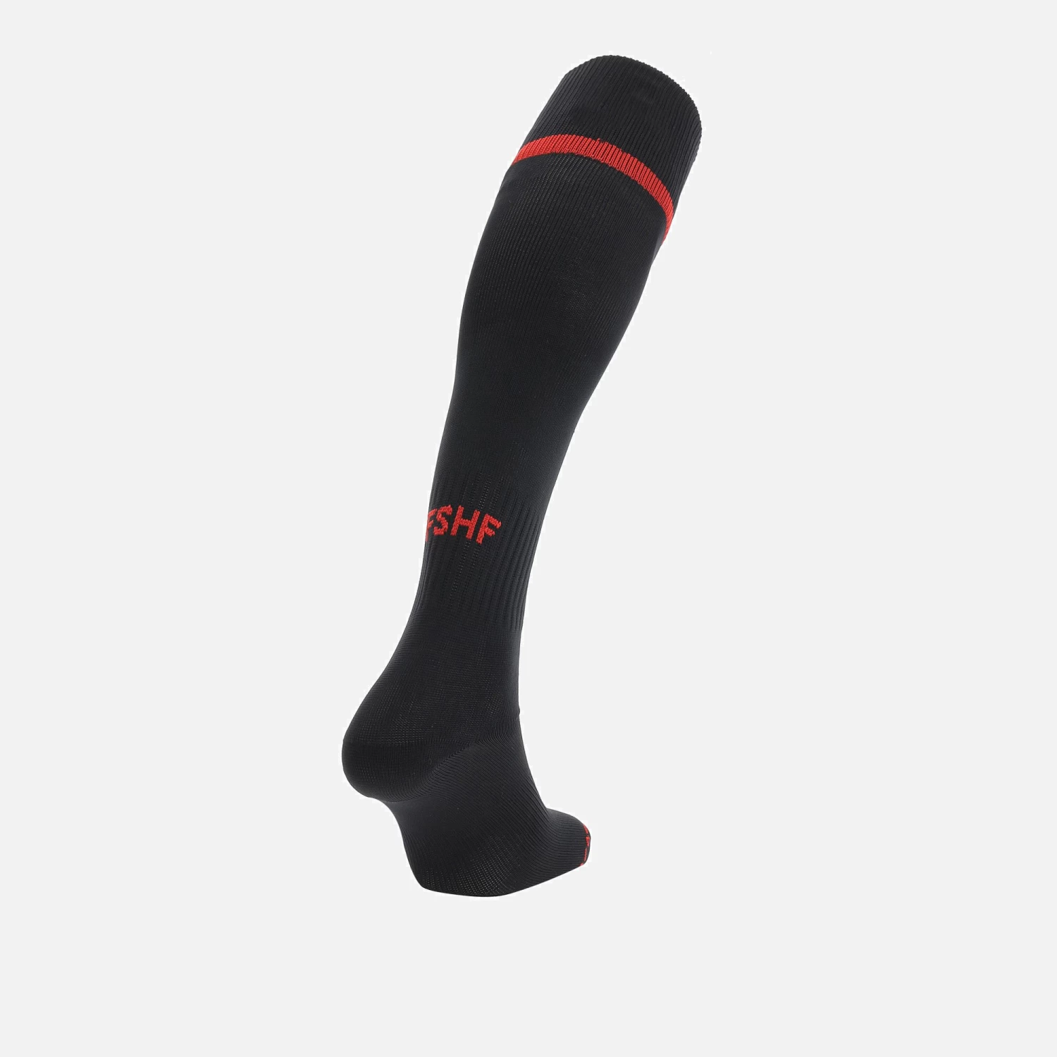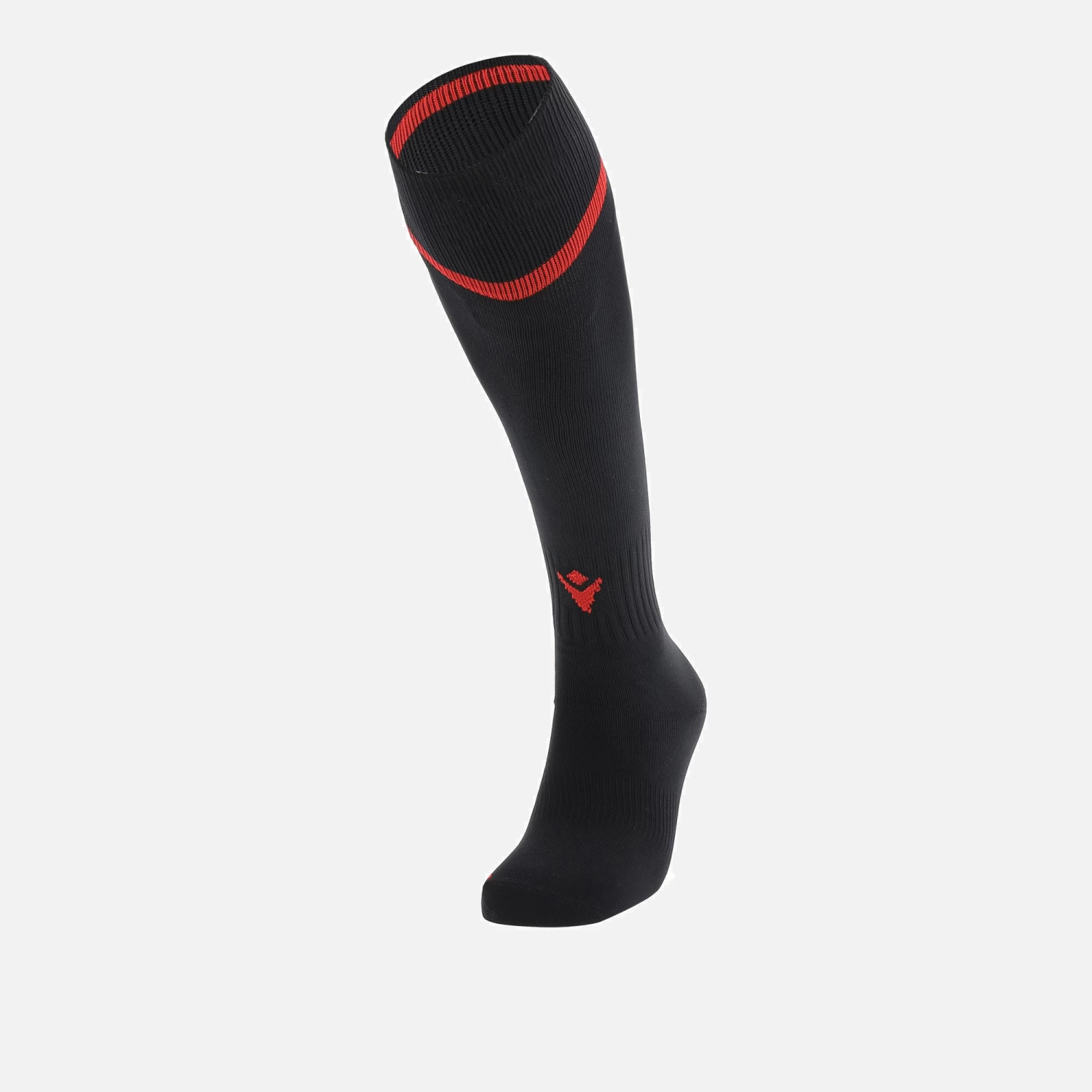 Albania national football squad 2020/21 home match socks in black with red detailing.
