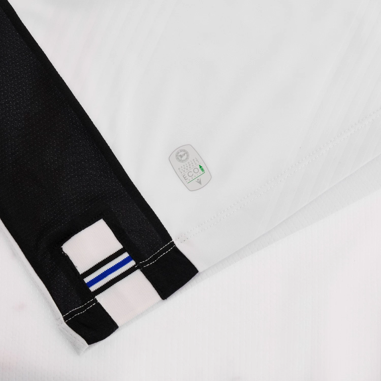 The new Arminia Bielefeld 2022/23 away jersey includes nods to tradition and a tribute to the city of Bielefeld. The front of the shirt features embossed geometric shapes that echo the crest of the city. At the shirt hem, meanwhile, is a small tricolor knit fabric insert. The date 1905 is embossed on the back. A shirt to be worn with pride, following all the club’s away games!