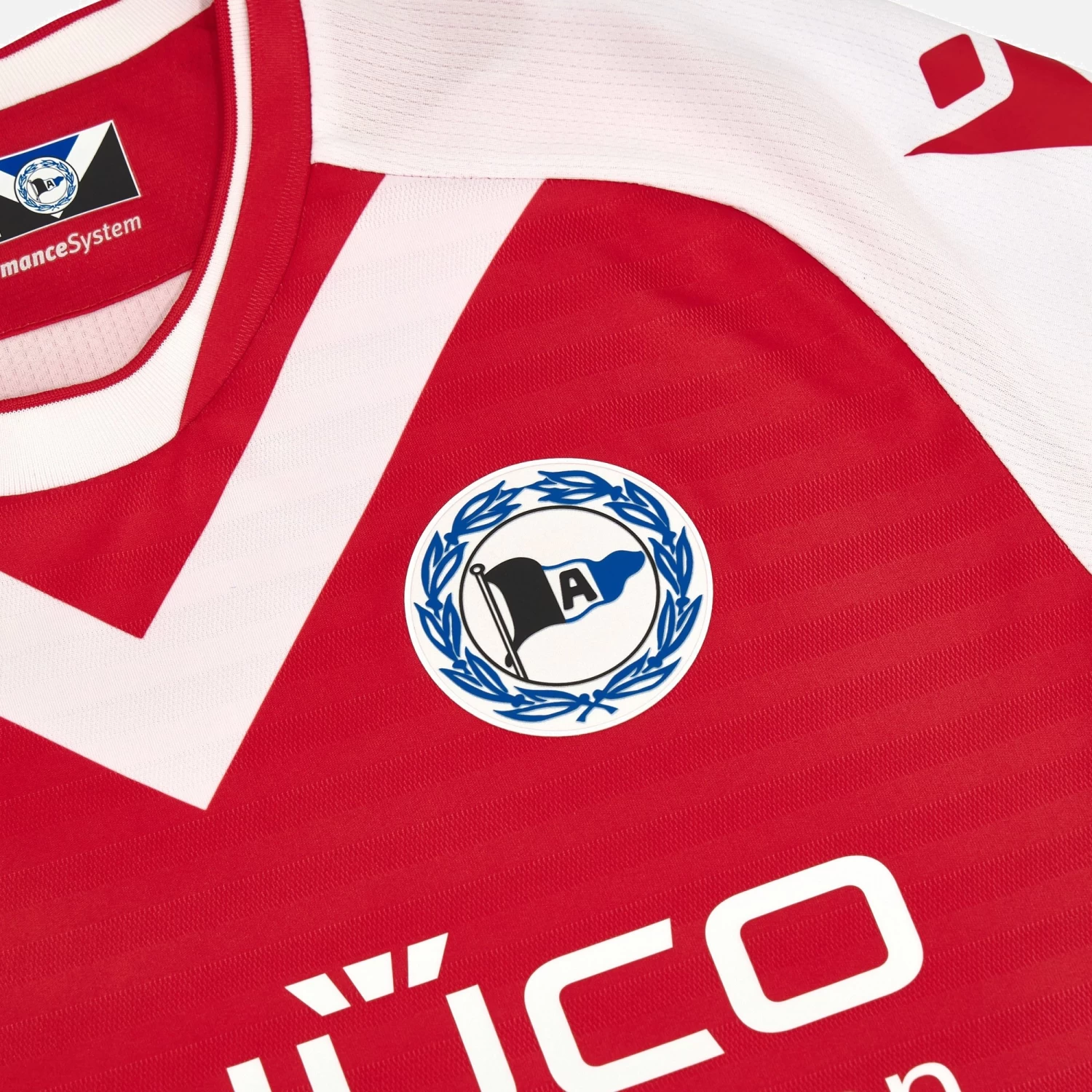 The 2023/24 season Arminia Bielefeld third game match sees a splash of red. The front stands out with its dye-sub white V, while the year of establishment of the club, 1905, is embroidered on the back. With a crew-neck collar, it is made in light and breathable Jacquard fabric. With additional eco mesh inserts for improved breathability.