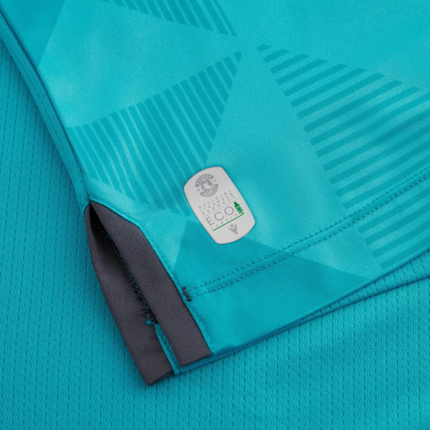 An away jersey with a different and totally original look. This is the new Asteras Tripolis shirt for the 2022/23 season. The light blue and anthracite grey colour scheme with a geometric pattern on the front make this a must-have garment. The phrase THERE’S NO PLANET B appears on the back at the bottom. The reference to environmental protection is clear and is further emphasised by the use of Eco Softlock fabric.