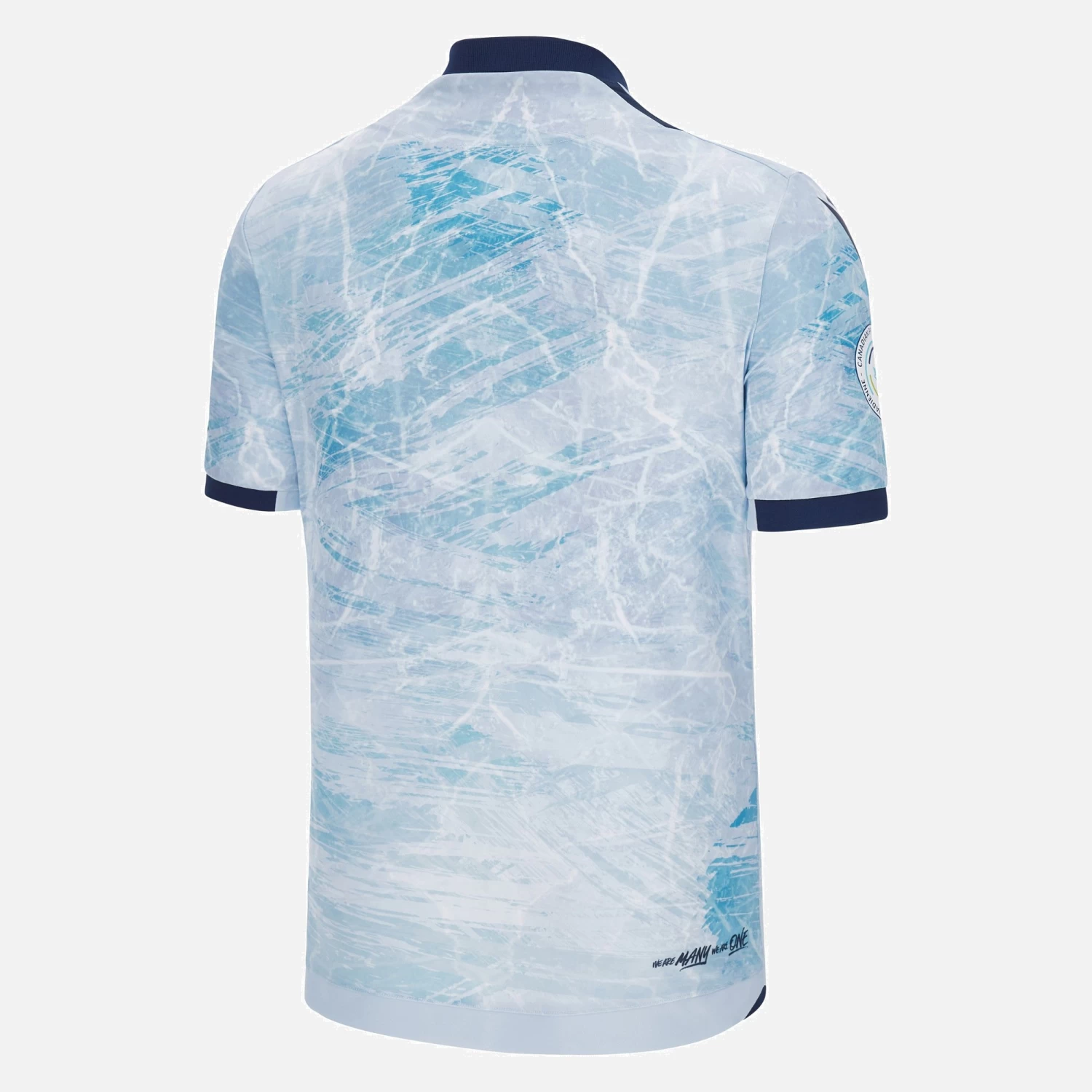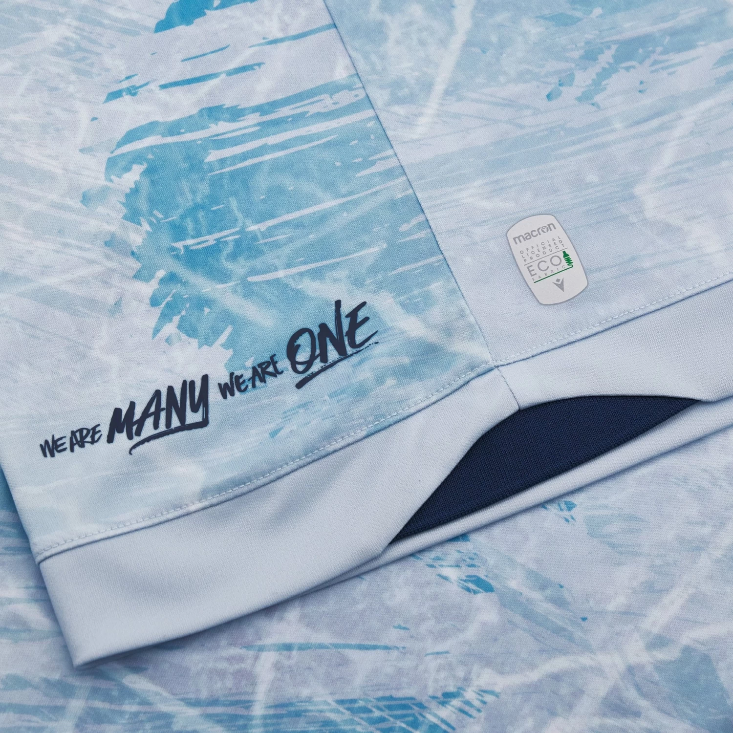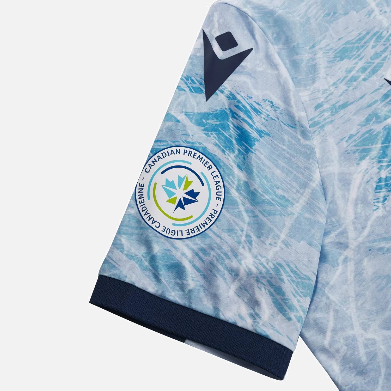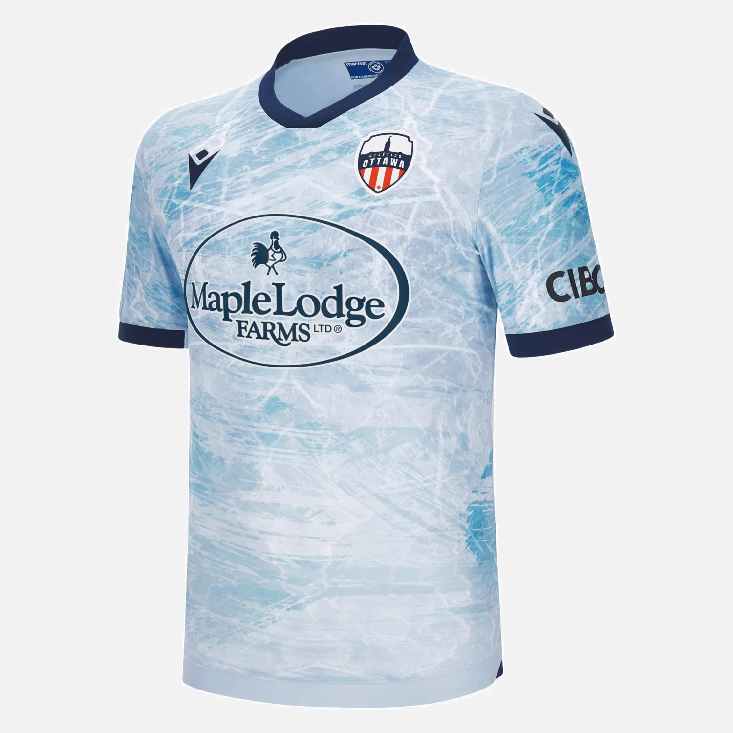 Shades of blue, white and silver accompany the new Atletico Ottawa 2023/24 away jersey. The pattern on the shirt is reminiscent of ice, a symbol for the city of Ottawa, considered one of the coldest on the planet, with particularly long winters. It sports blue details on the collar and armholes. The motto WE ARE MANY WE ARE ONE appears on the back of the shirt at the bottom.