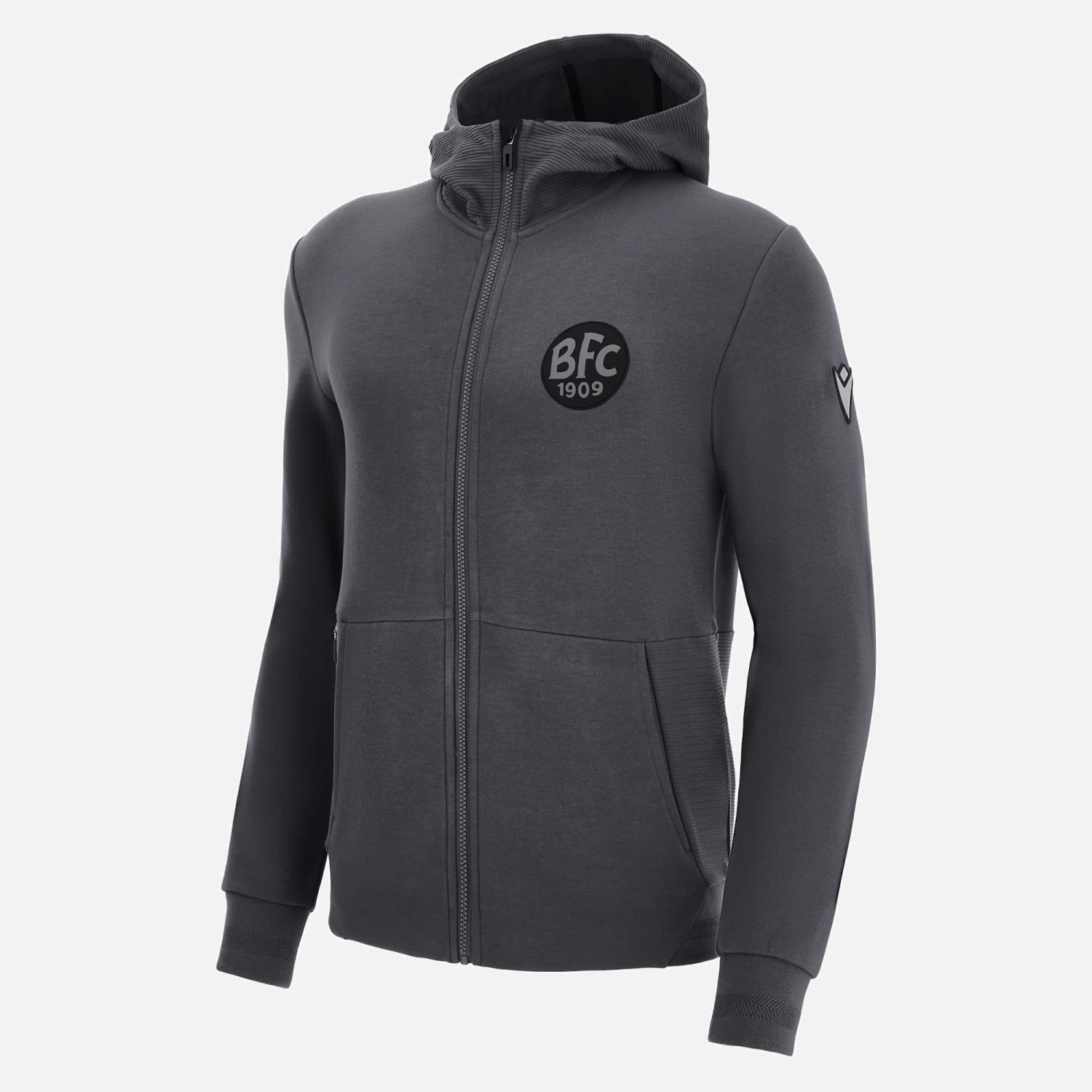 The Fargo men’s full-zip hooded sweatshirt makes you feel protected from the cold even without a jacket. Ideal for the chilliest winter weather, it can also be worn on cool autumn days. It’s made from soft, warm, stretch interlock fabric, which guarantees elasticity while keeping the body warm and dry. Enhanced with additional details in stretch jacquard fabric. Particularly practical features include a mesh-lined pouch pocket and a mobile phone pocket.