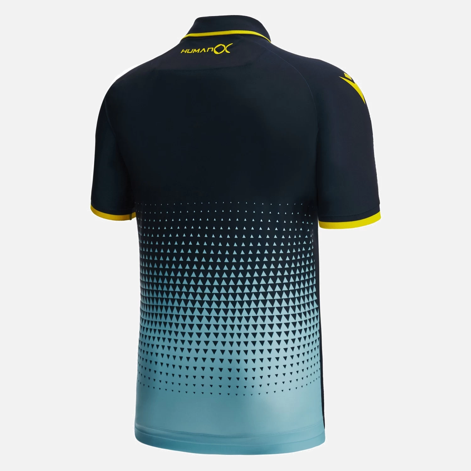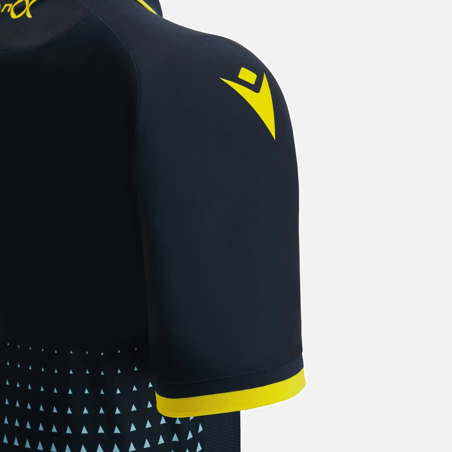 The Cadiz FC 2022/23 away jersey features a dye-sub print with an optical dégradé effect comprised of triangles, with the shape taking inspiration from the club logo.