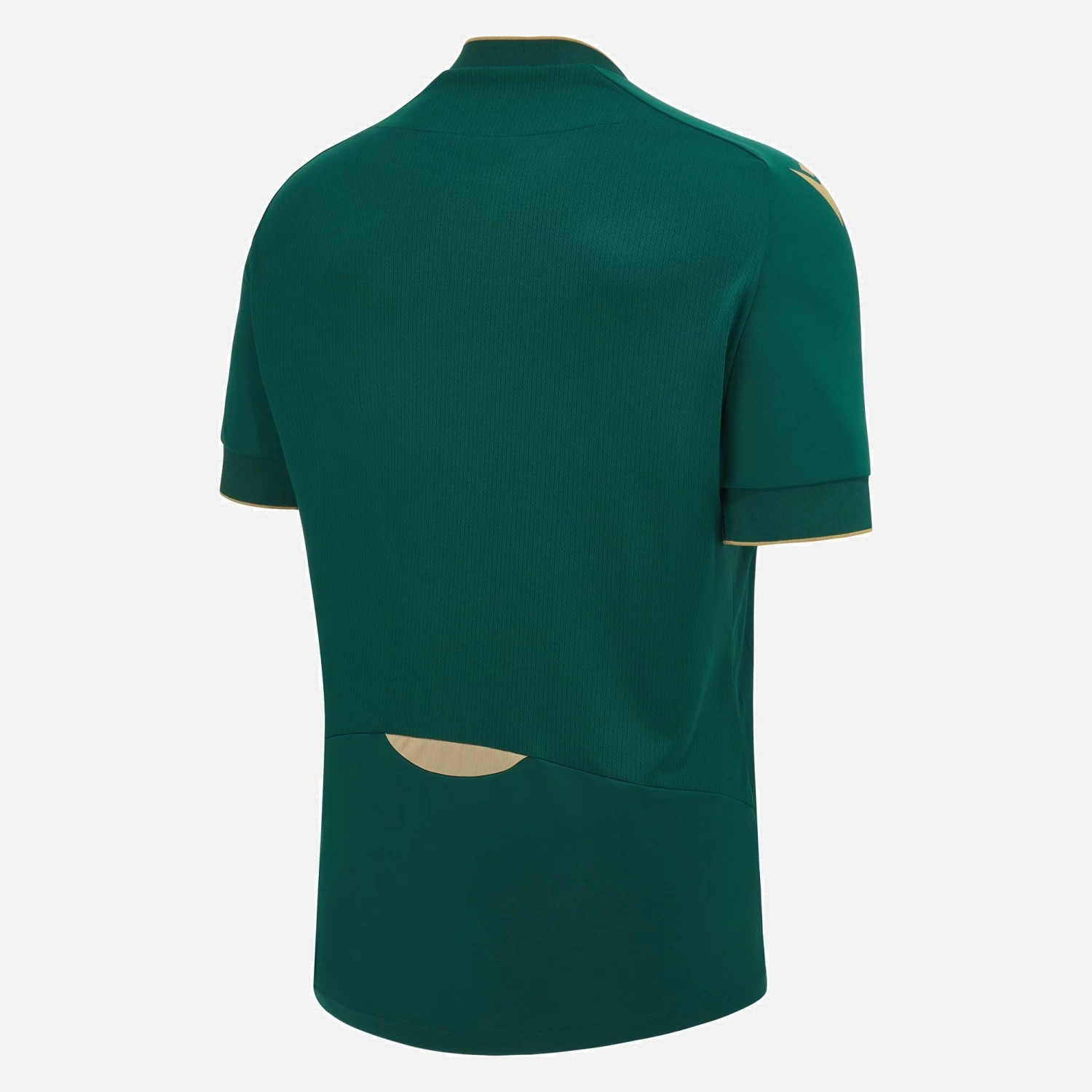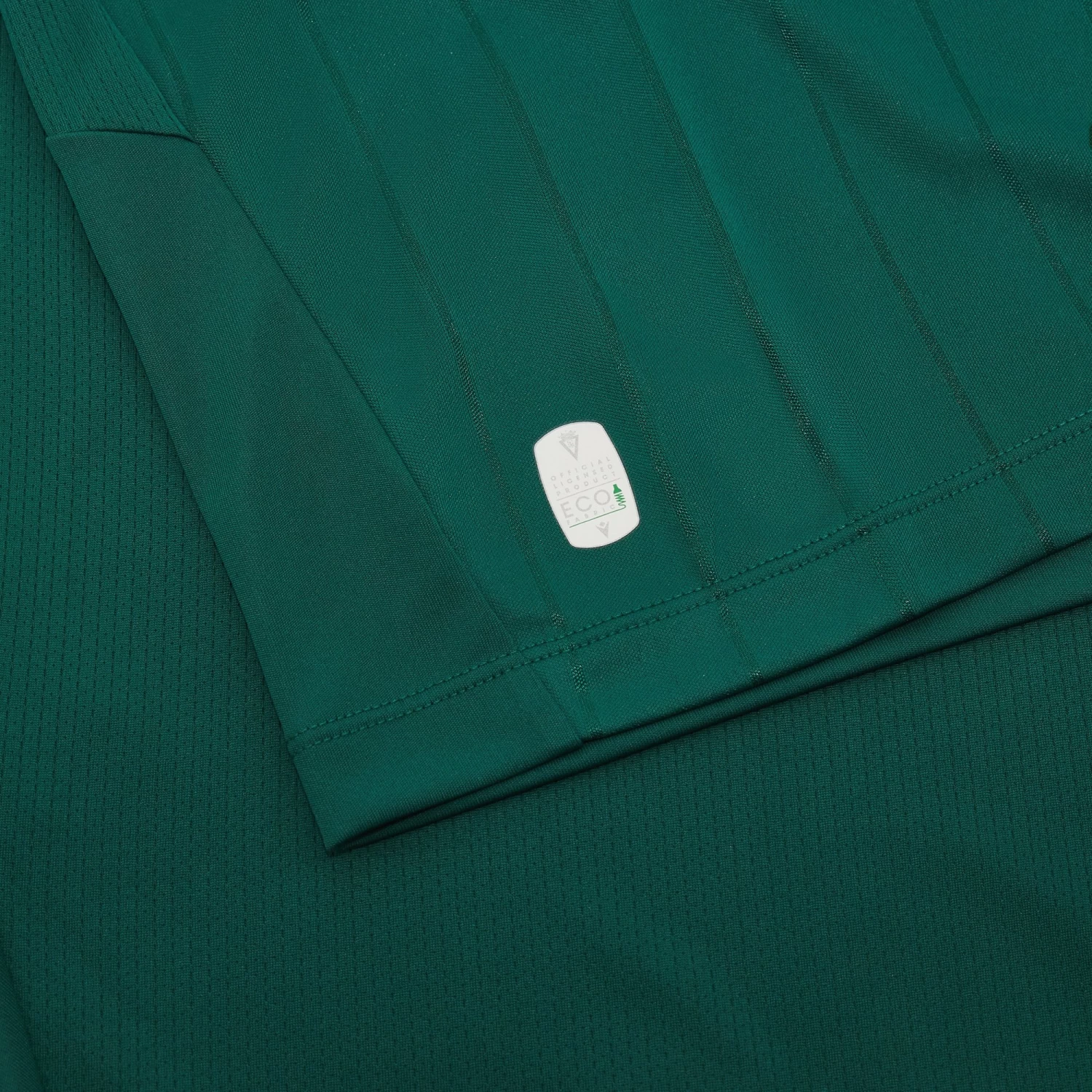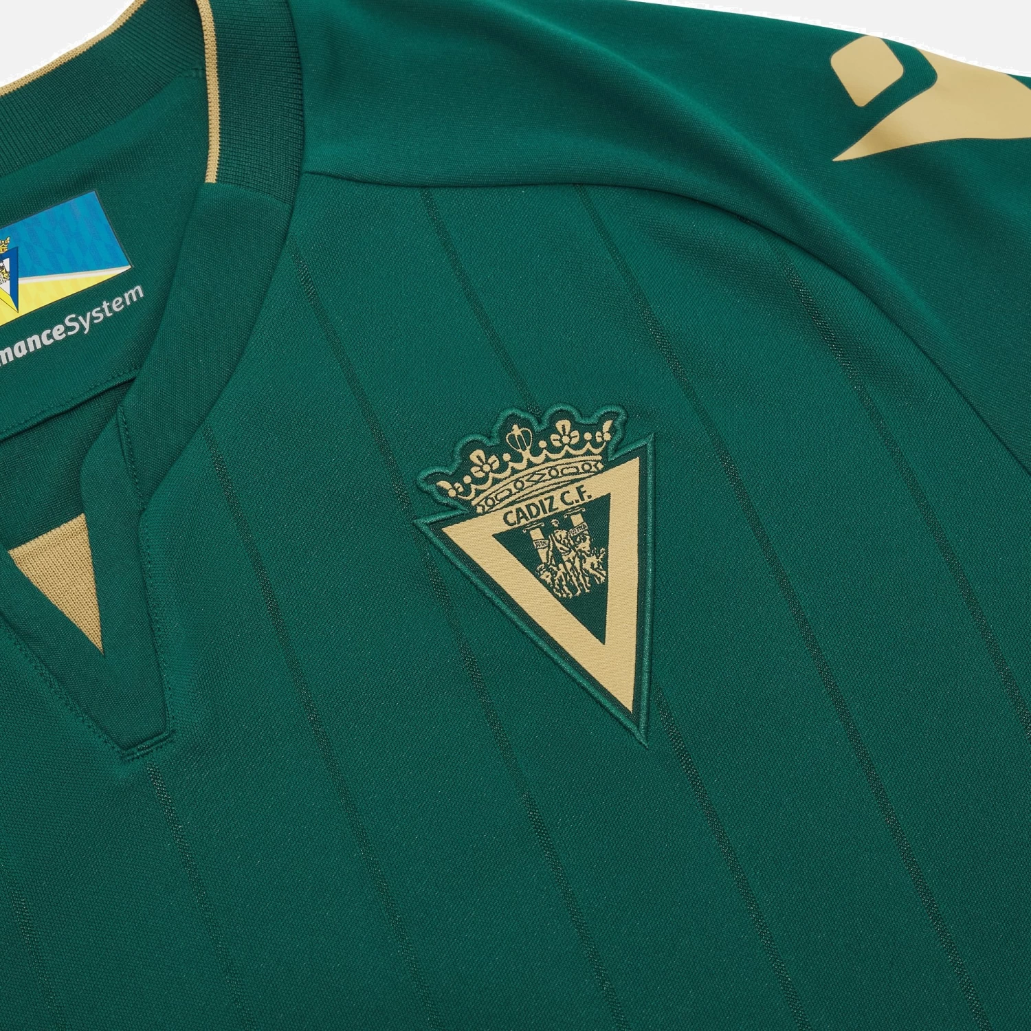 A brand-new design for the Cadiz FC 2023/24 third match shirt made of technical fabric designed specifically for the game kits. The colour which stands out on the whole garment is forest green, which is accompanied by the golden collar, sleeves and back. With club badge on the left breast and eco mesh inserts on the back for a fresh feel at all times.
