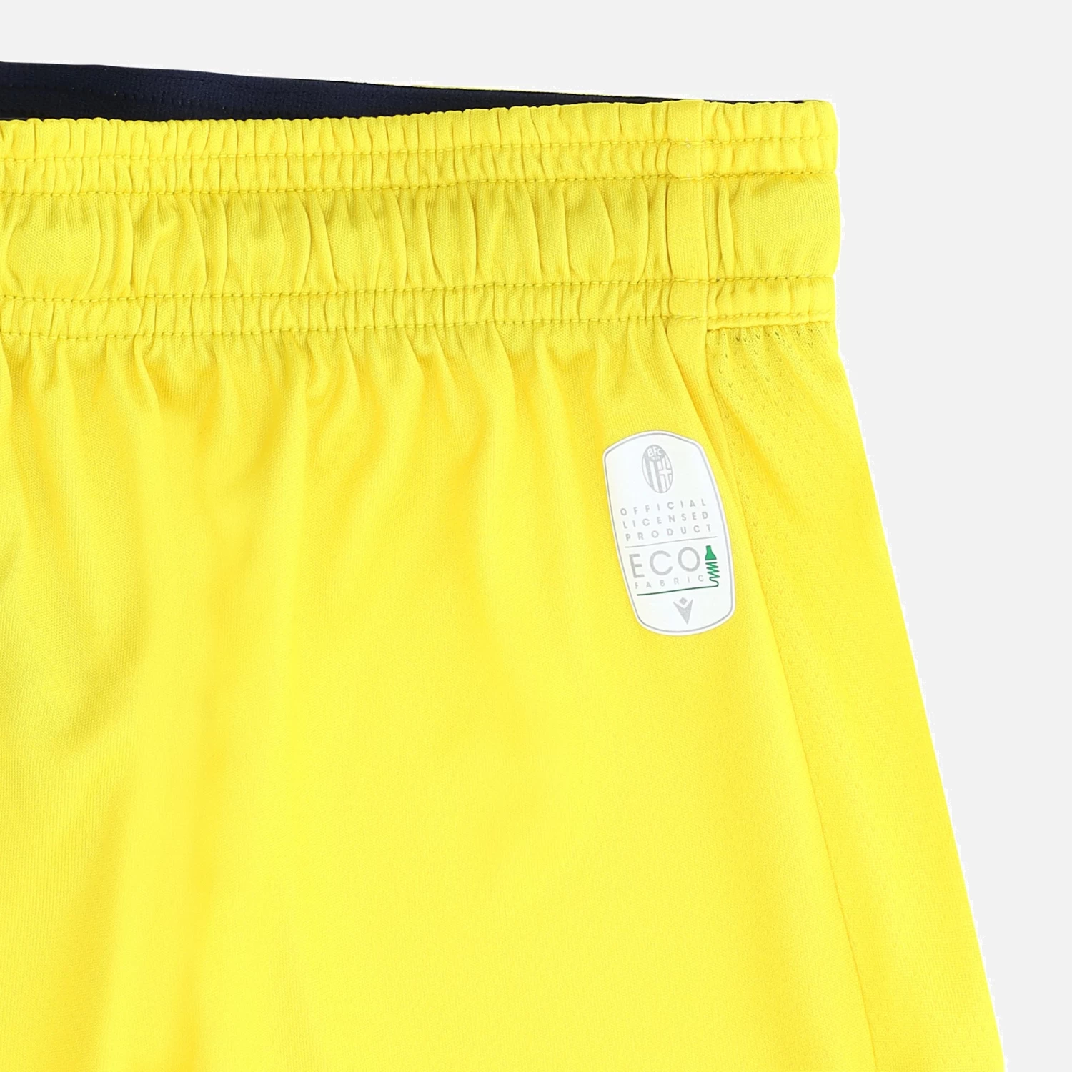 Children’s Bologna FC 2021/23 third game shorts. Yellow with blue detailing. Club badge in silicone on the right hip.