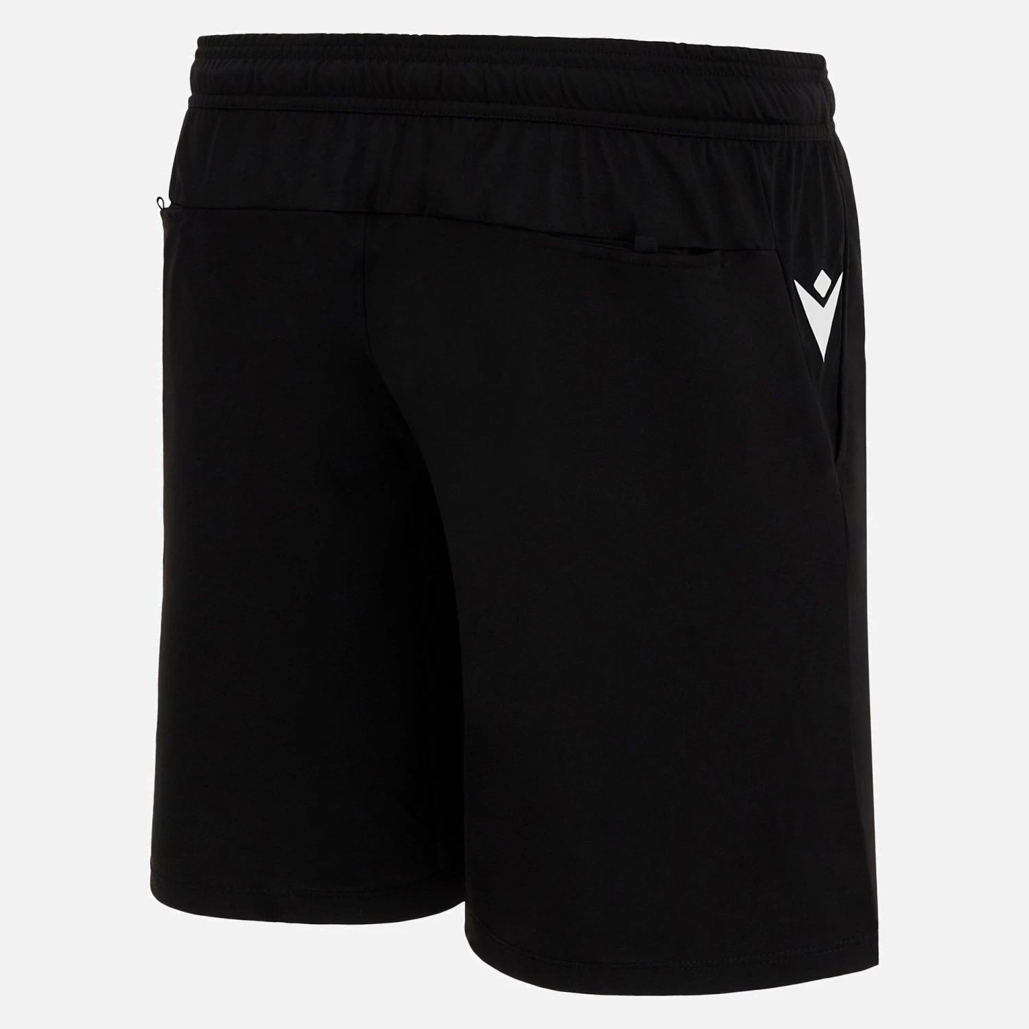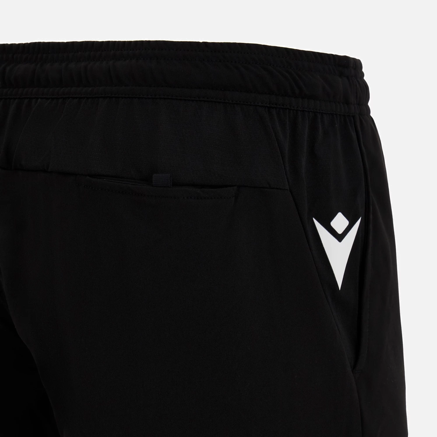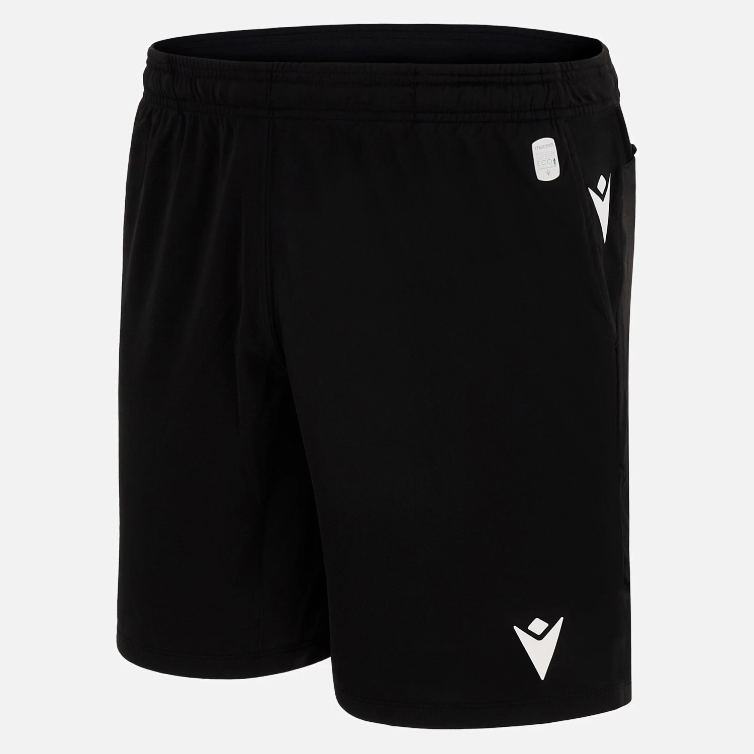 Comité Técnico de Árbitros 2022/24 referee shorts black. The referee shorts, created by Macron for Comité Técnico de Árbitros, come in eco-softlock fabric mixed with eco-mesh. Practical velcro pockets feature on the back. The flat black drawstring contrasted by a white cord add an extra touch.