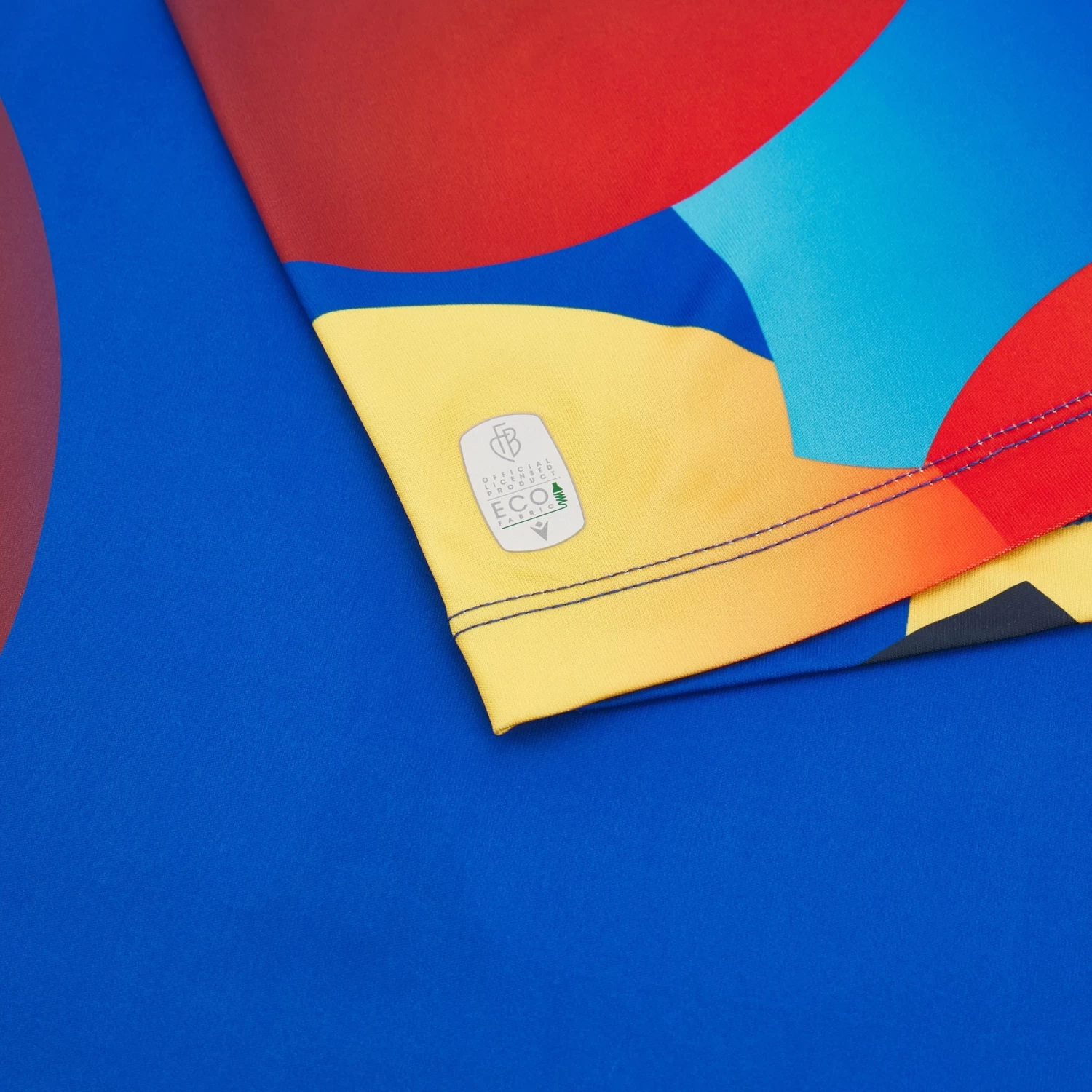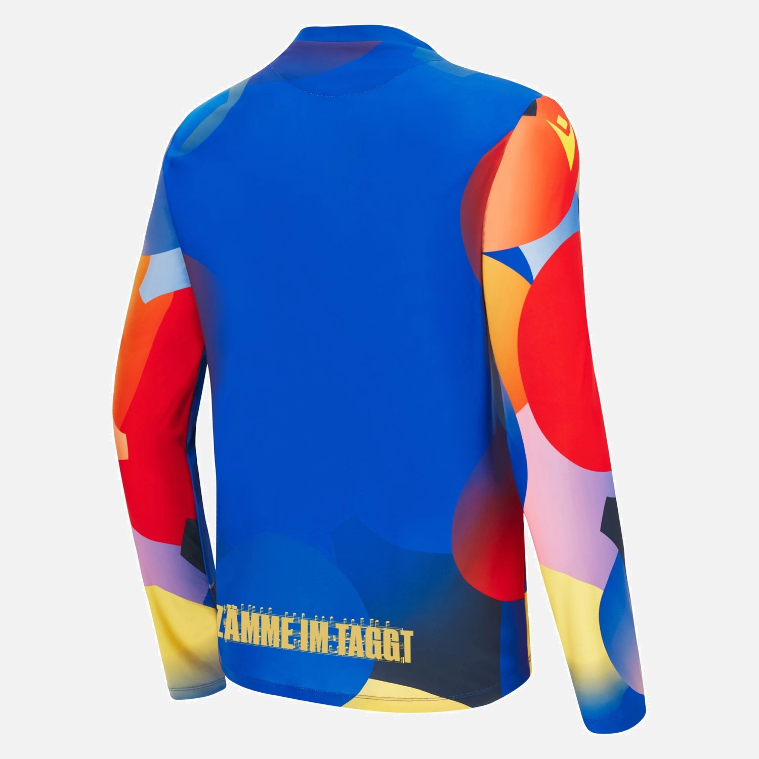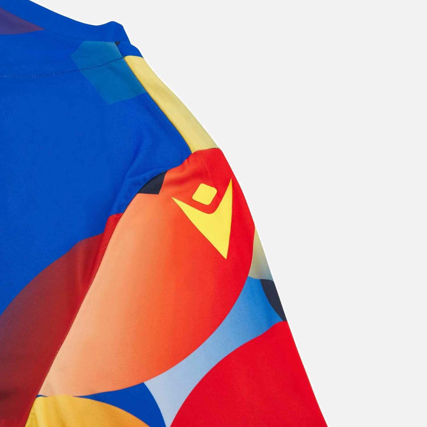 A cheerful mix of colours and shades denotes the special carnival-themed jersey of FC Basel 1893. Made of Eco Softlock fabric with a crew neck, it features comfortable long sleeves that also pick up the colourful pattern. Blue in colour, it’s embellished with vibrant red and yellow details that give it a unique style. Check it out and join in the celebrations!