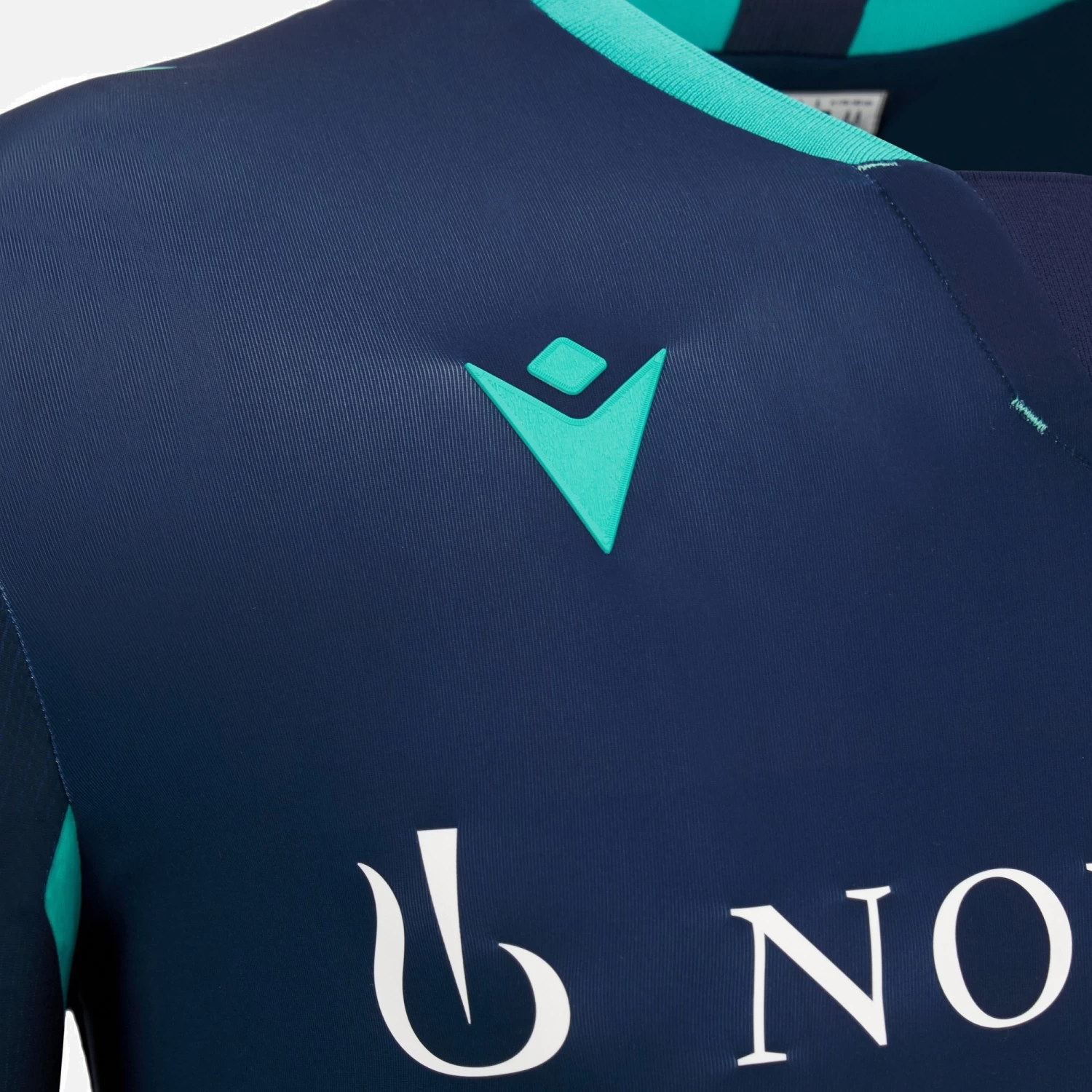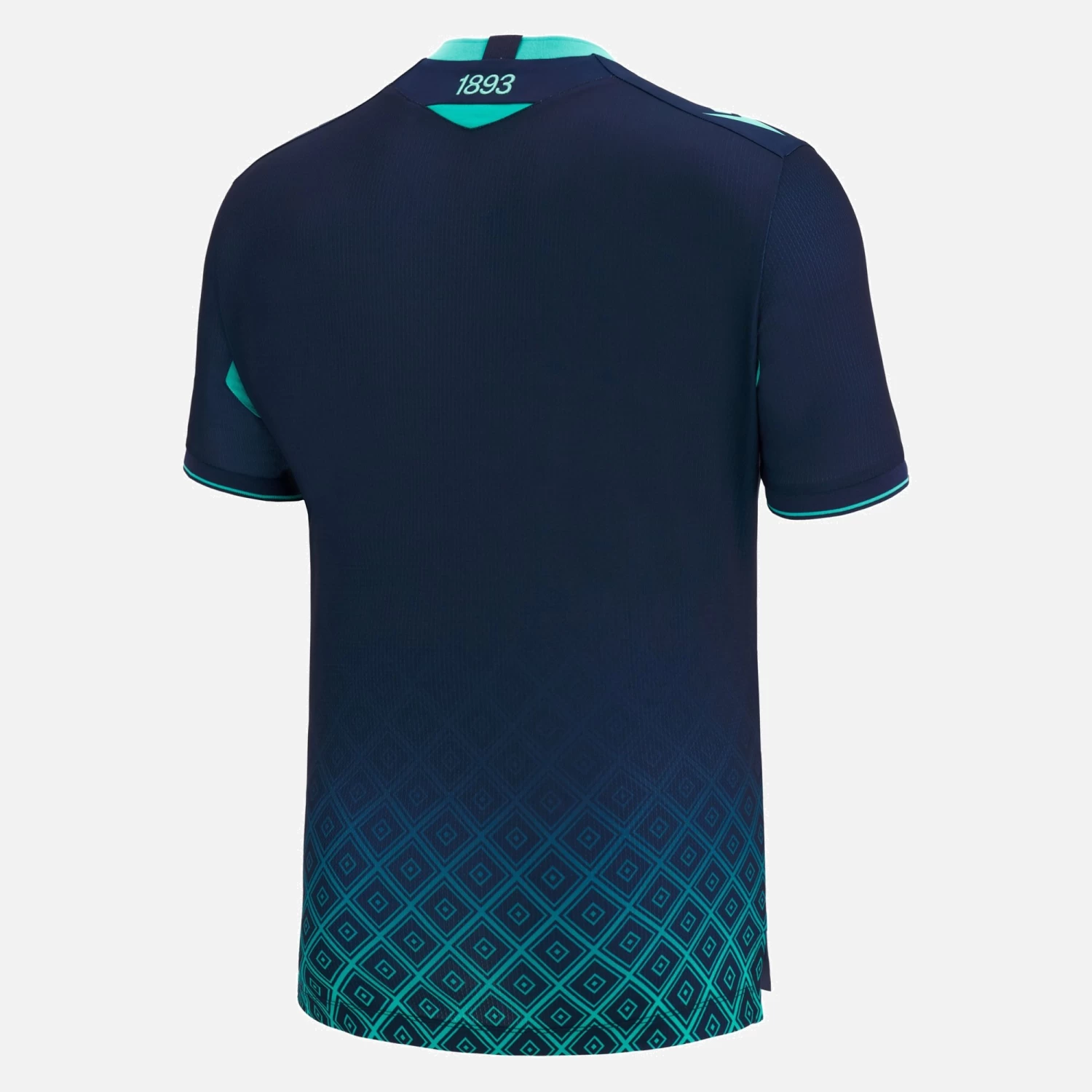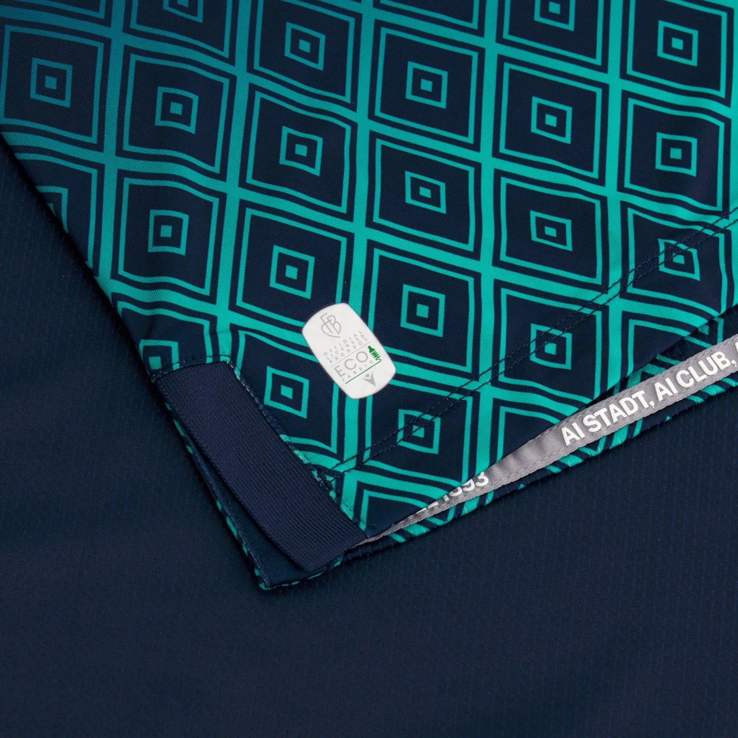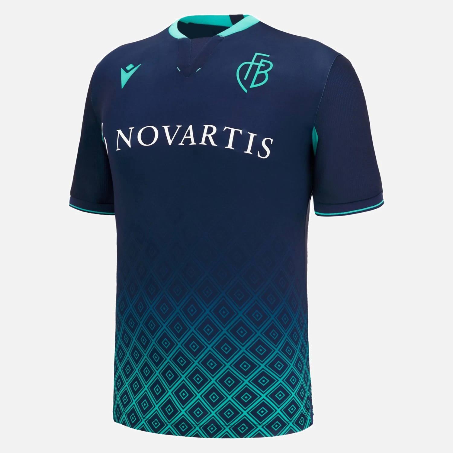 A special fourth match jersey with a design that brings together architecture and history, plus references to younger generations. Indeed, the 2022/23 fourth match shirt of FC Basel is called GENERAZIONE Z edition, a clear nod to the world of e-games. The jersey combines navy blue and mint green. Here too, as in the other 3 shirts, the dye-sub diamond pattern features an fade effect from the bottom up, reminiscent of the tiles of Basel Minster. The Eco fabric ensures lightness and coolness, while also delivering impressive environmental credentials.