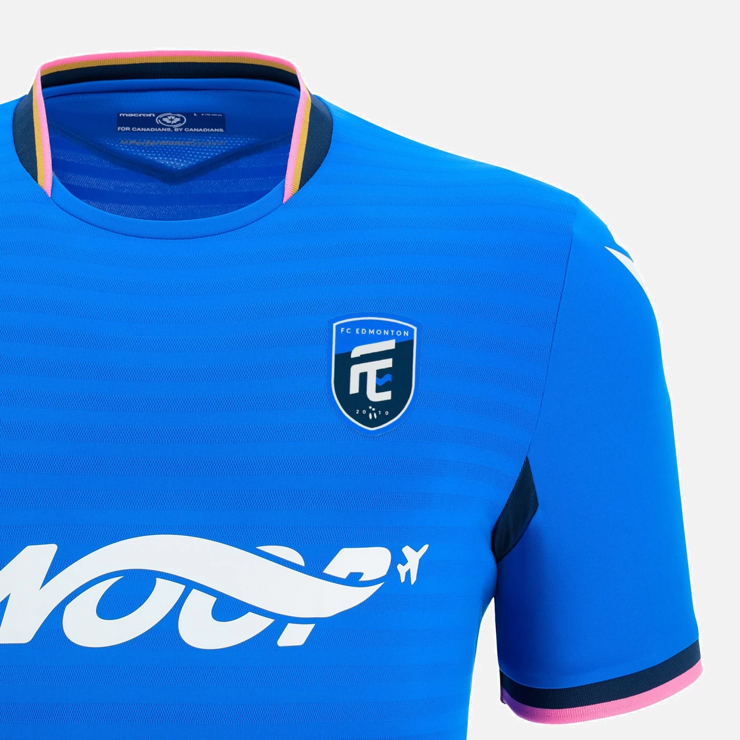 A horizontally-striped jacquard pattern distinguishes the entire FC Edmonton 2022/23 home shirt, on both the front and back. The design is therefore highly dynamic and fresh. The rounded shape of the collar adds a touch of style too. The back of the neck is customised with the motto: WE ARE MANY WE ARE ONE.