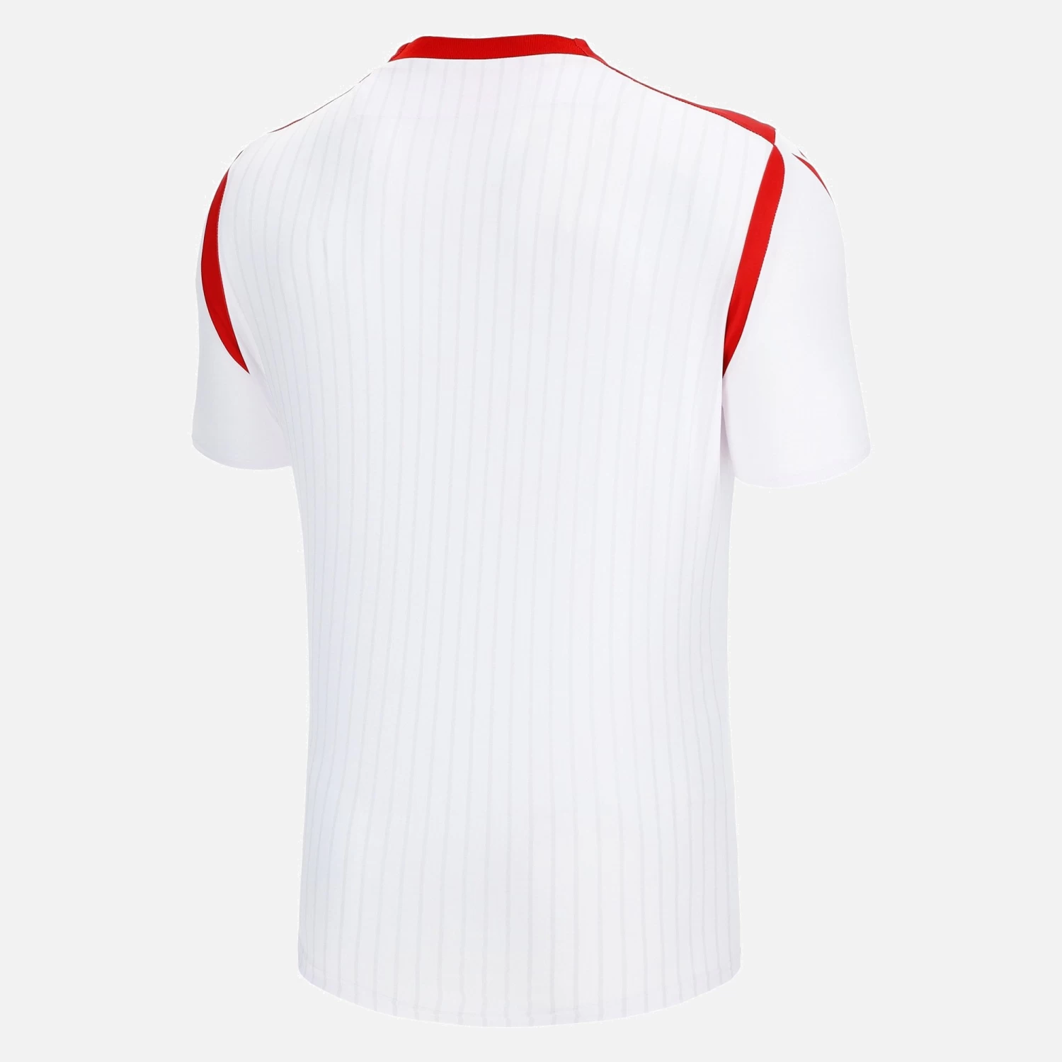 A jersey that celebrates a nation and its national imagery. The new home jersey of the Football Association of Greenland is white with red detailing. The front of the jerseys pays homage to sled dogs – an animal synonymous with the Nordic country – through a grey gradient-effect design. The jerseys are simple and smart.