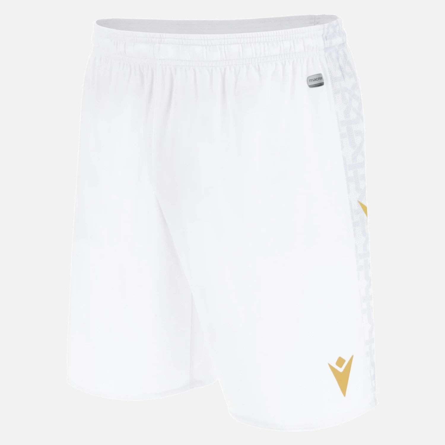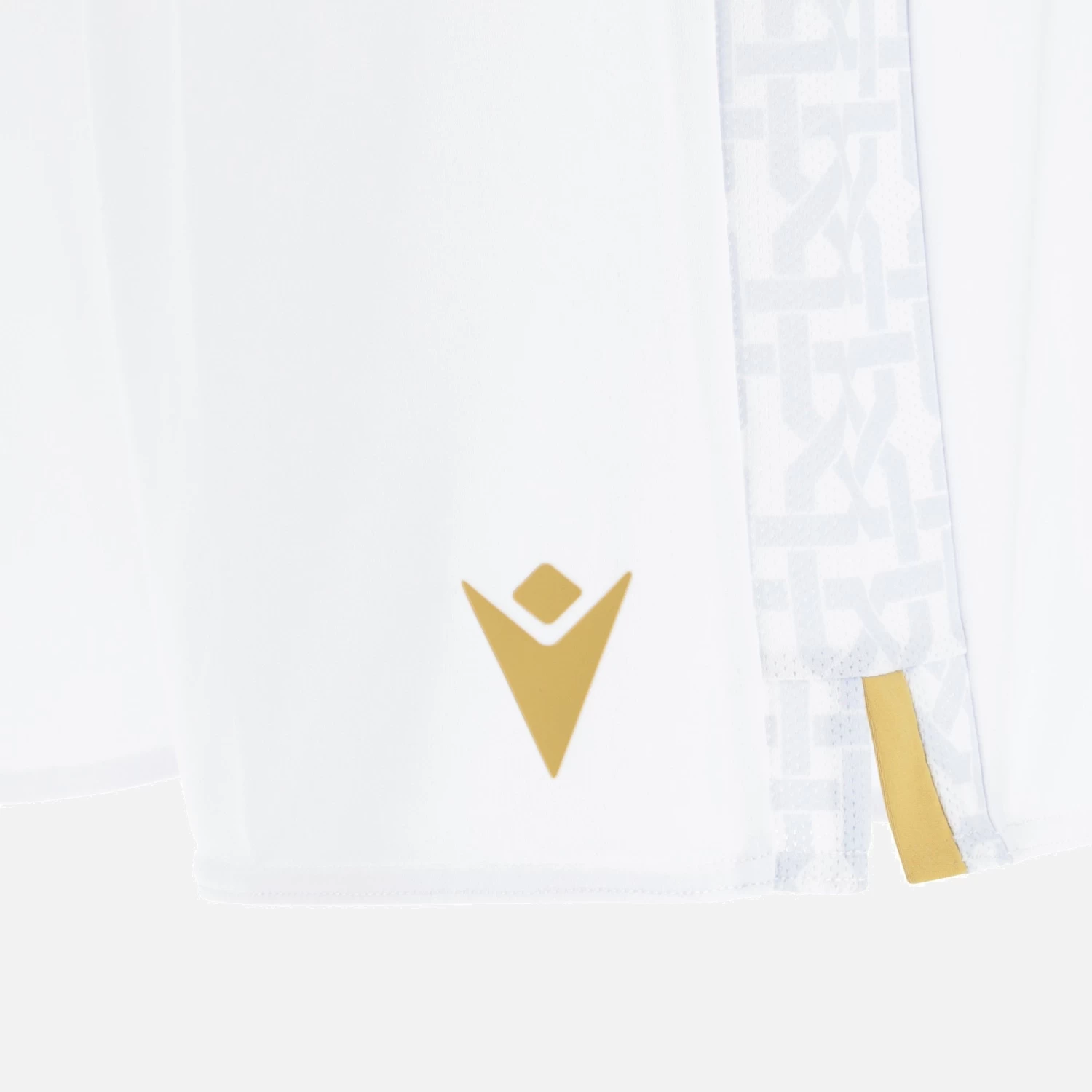 Football Federation of Armenia 2022/23 third match shorts in white with gold detailing. Featuring mesh inserts that ensure freshness and side slits for greater freedom of movement.