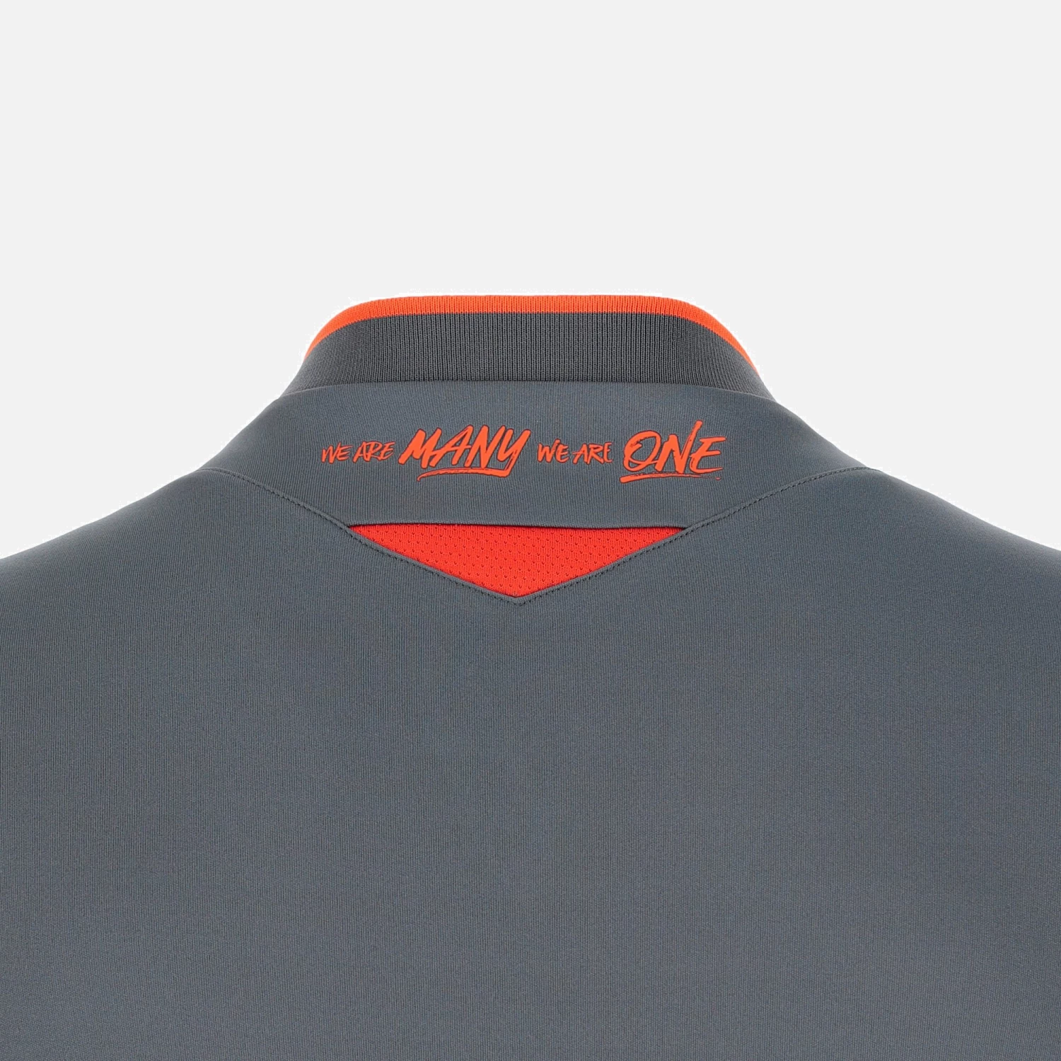 Steel is the leitmotiv of the Forge FC 2022/23 away shirt, both in its colour – grey – and in the embossed pattern on the front. The reference is to the iconic Warplane Heritage Museum in Hamilton: the surface of an aeroplane seems to have been drawn on the shirt. HAMILTON is hot stamped on the back, along with the motto: WE ARE MANY WE ARE ONE on the back of the neck.