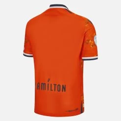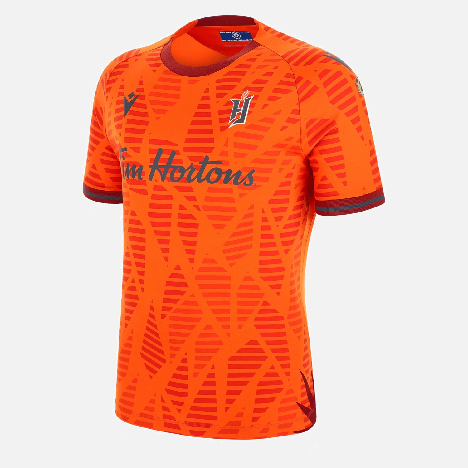 The colour orange is the focus of the Forge FC home shirt for the 2022/23 season. The tone-on-tone dye-sub design is sprightly, fresh and dynamic, recalling flames. The name HAMILTON is hot stamped on the back at the hem while the back of the neck is customised with the motto: WE ARE MANY WE ARE ONE.