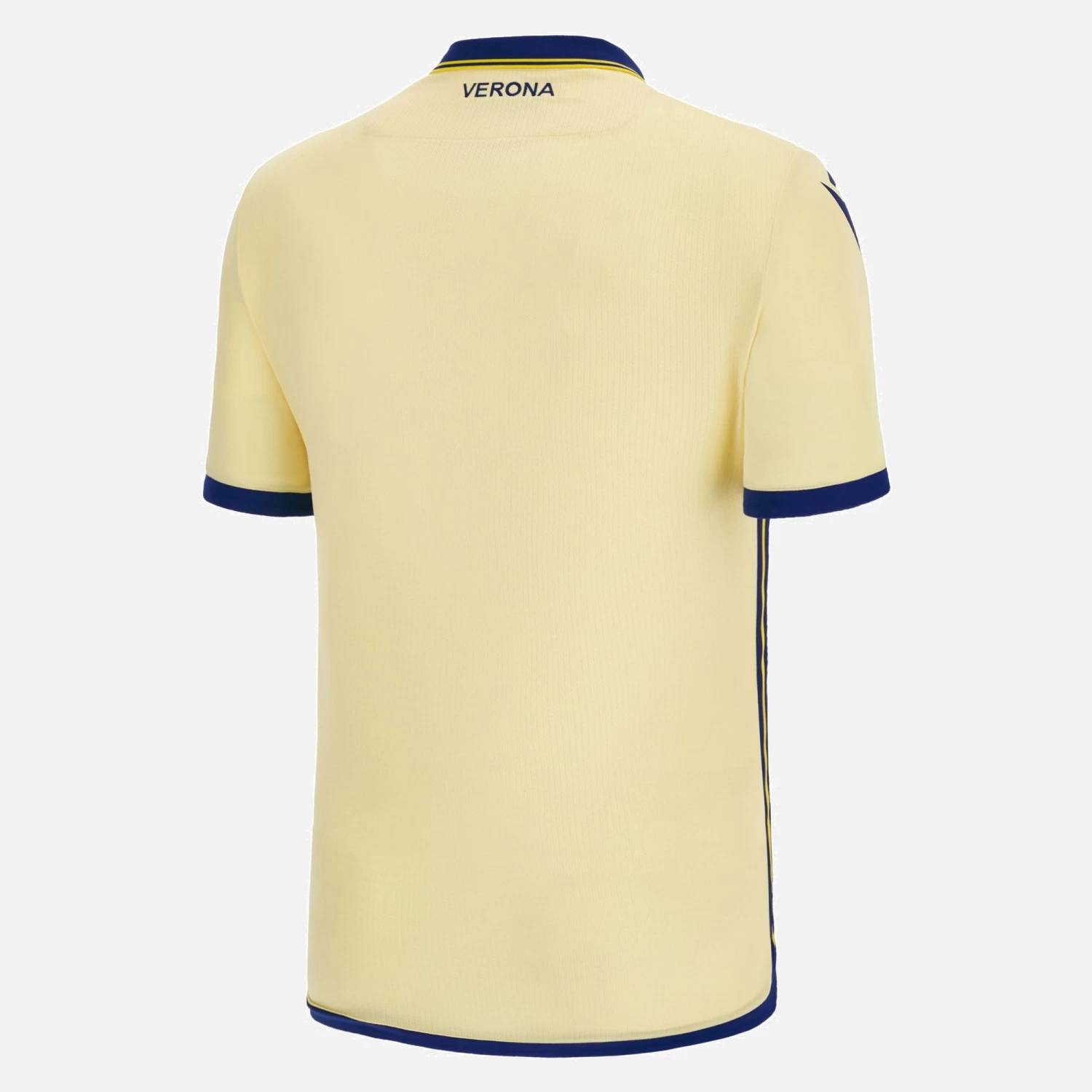 The Hellas Verona 2022/23 away jersey is designed for dominating the field during away games too. The smooth, clean beige coloured design is combined with yellow and blue detailing on the sleeves, sides, bottom and collar, adding a dynamic touch to the understated style.