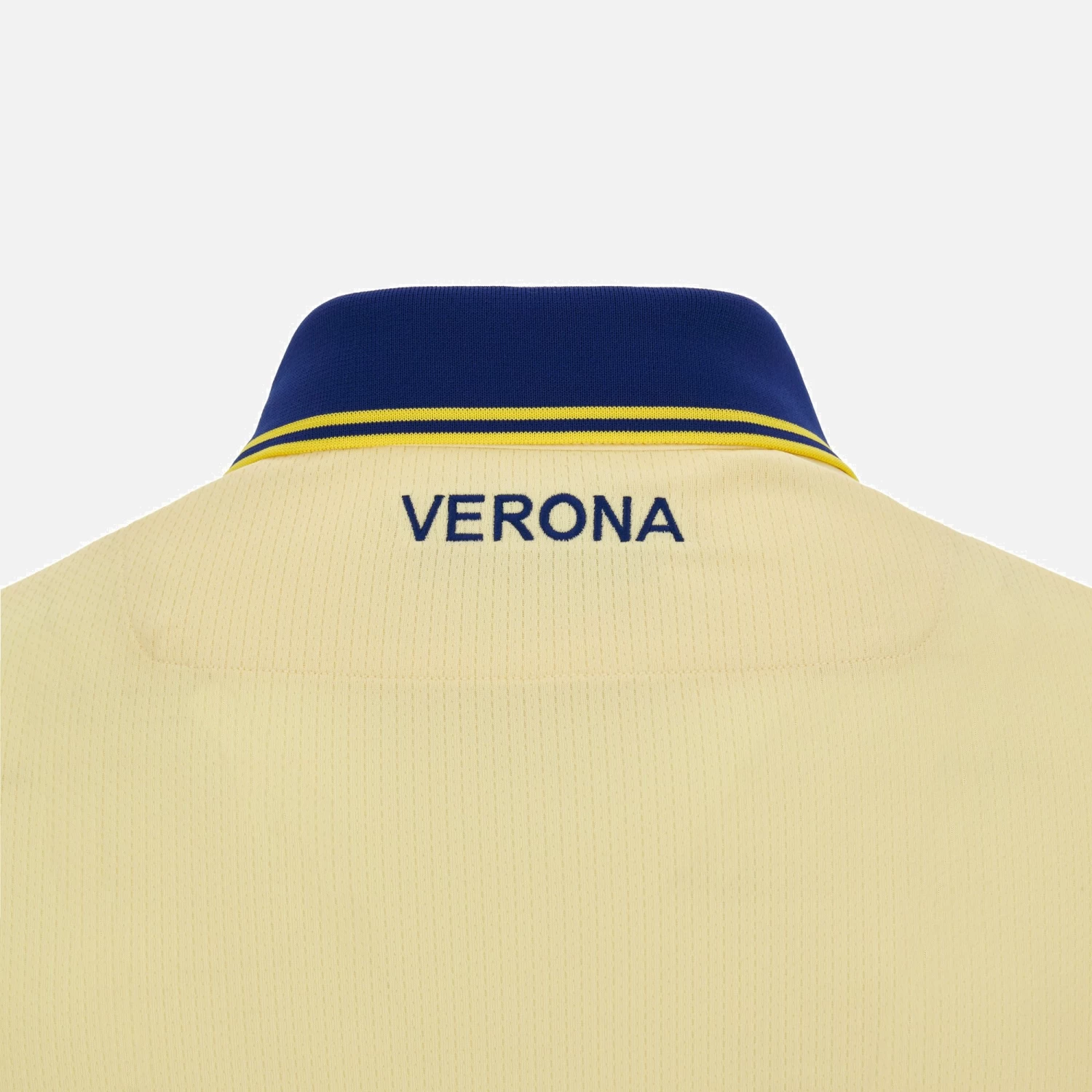 The Hellas Verona 2022/23 away jersey is designed for dominating the field during away games too. The smooth, clean beige coloured design is combined with yellow and blue detailing on the sleeves, sides, bottom and collar, adding a dynamic touch to the understated style.