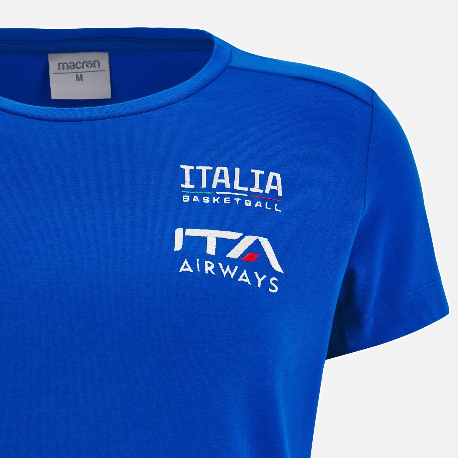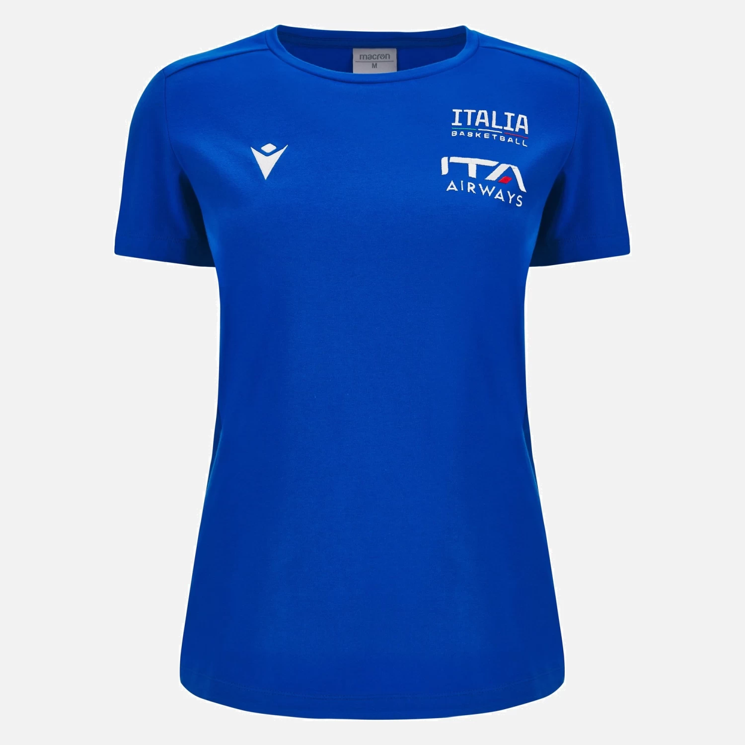 Italbasket 2023/24 woman cotton t-shirt. Combine design, stylistic details and functionality, and get maximum comfort, also during travelling or away games. Choose style when you’re off the field too. Give your looks a touch of class and show your real passion for your favourite team.
