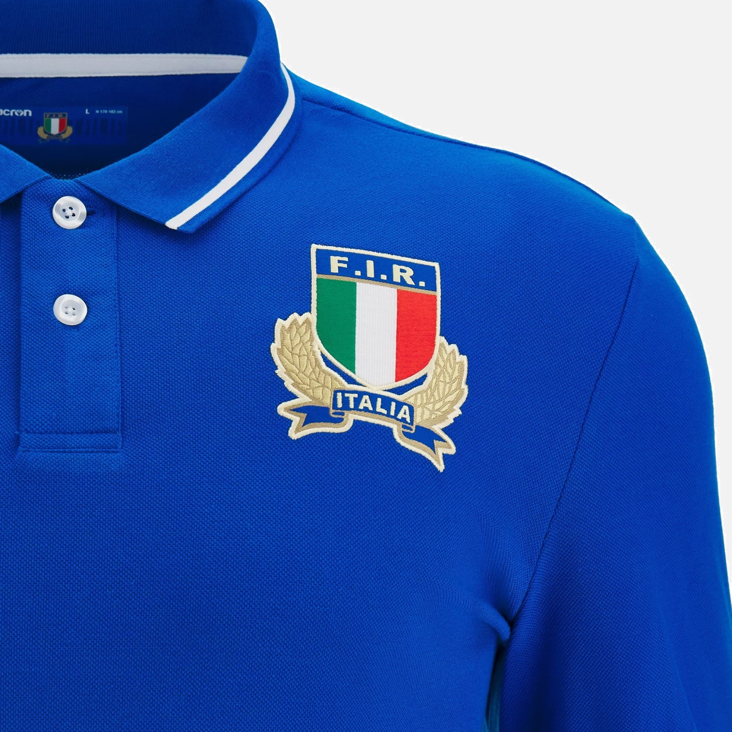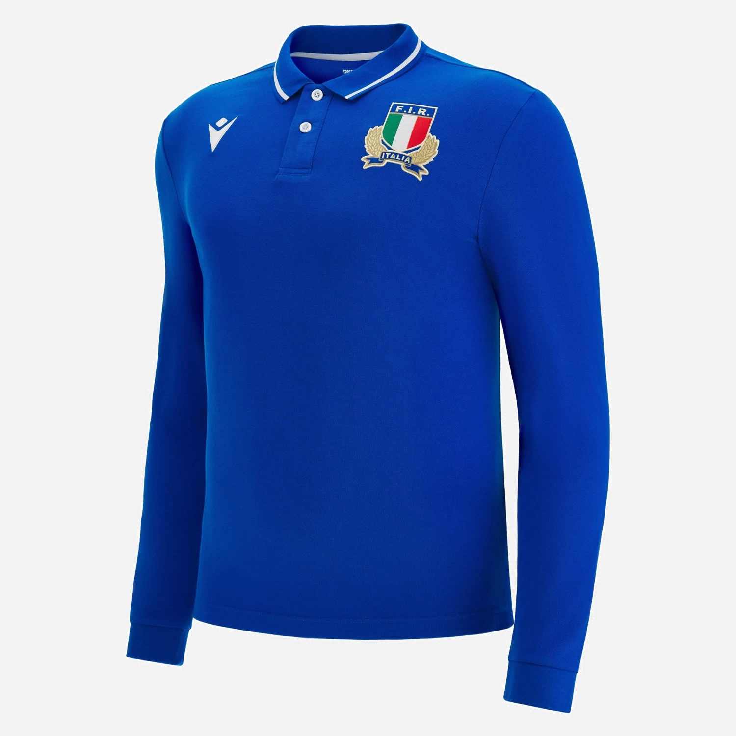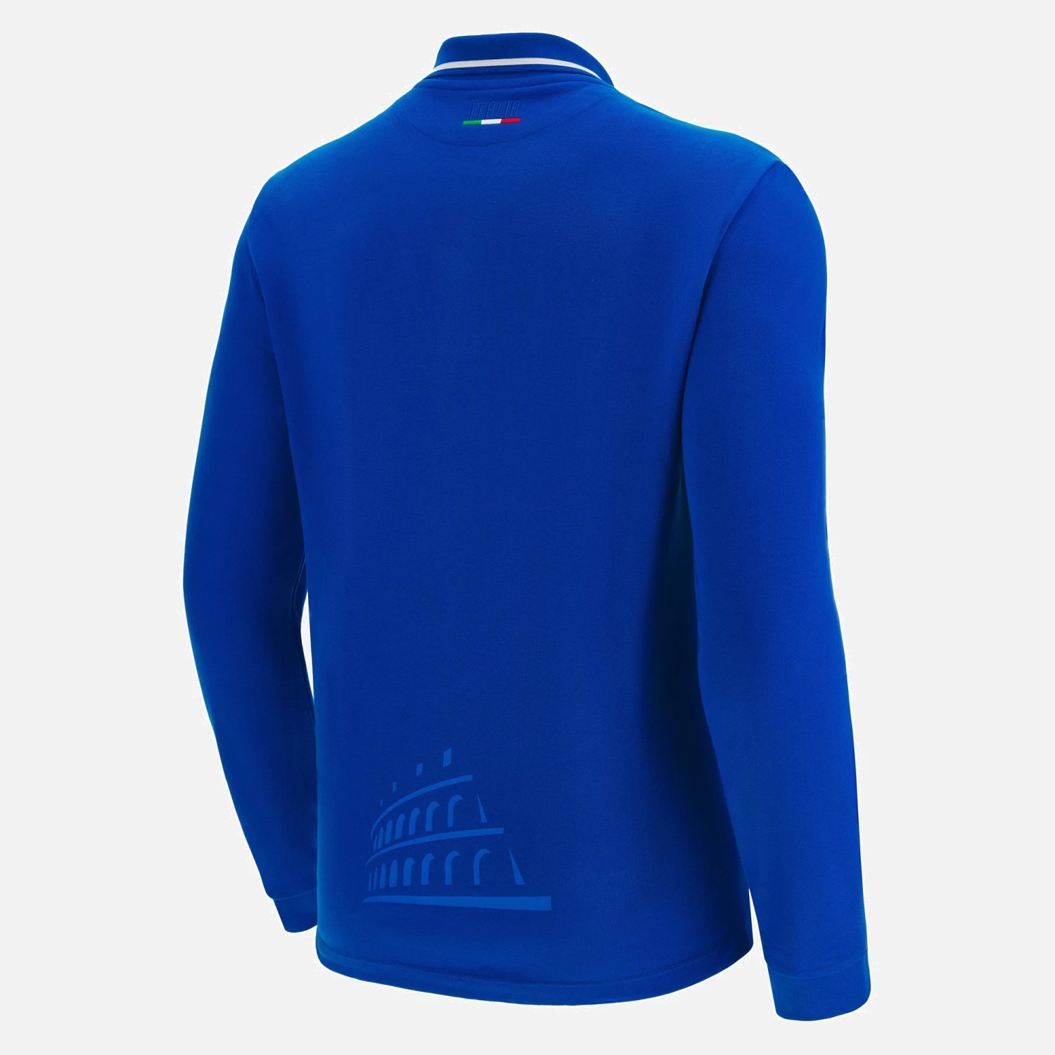 Italia Rugby 2022/23 long sleeve replica home shirt in cotton. The style takes inspiration from polo shirts, with design that guarantees comfort and lightness. On the back at the bottom is a stylized print of the Colosseum. The Italian flag is embroidered on the back of the collar. A must-have garment for the new season.