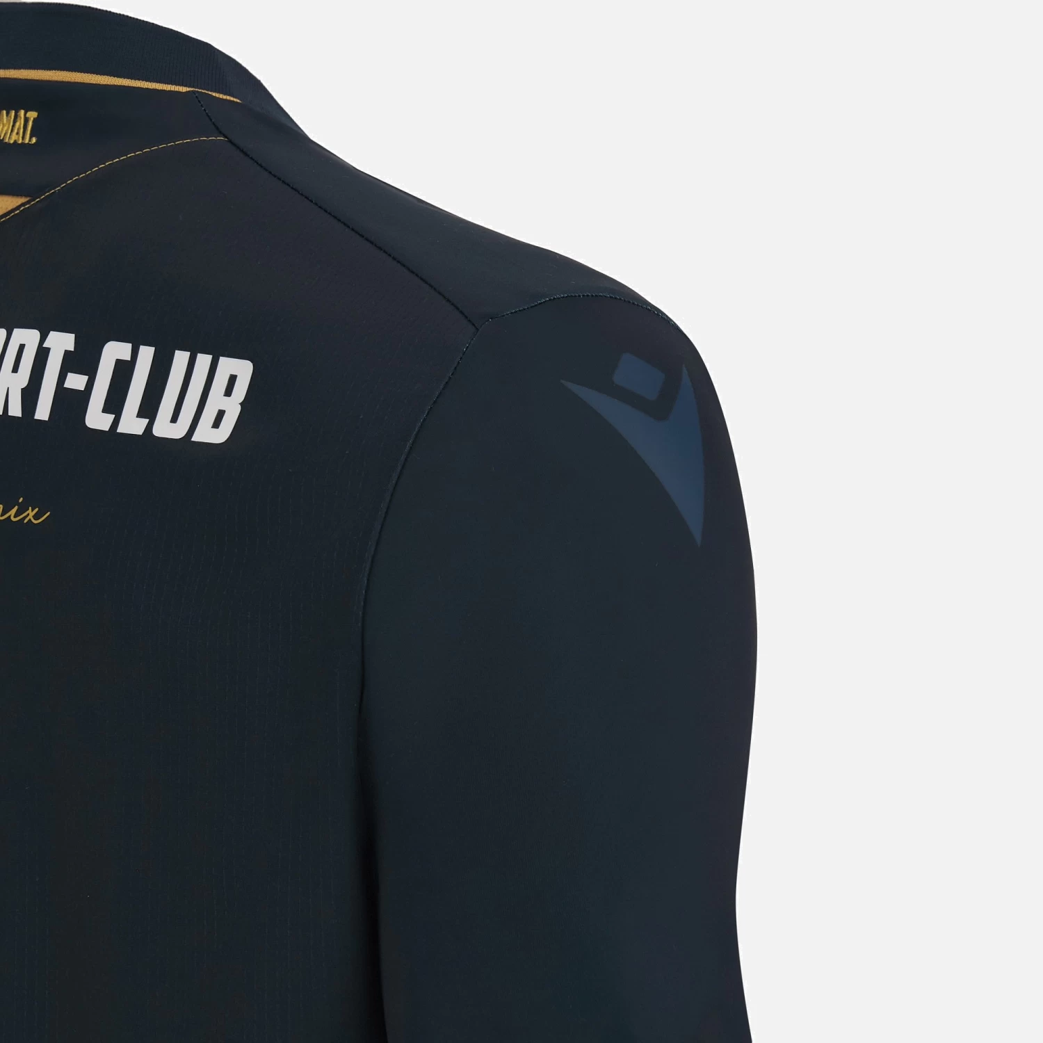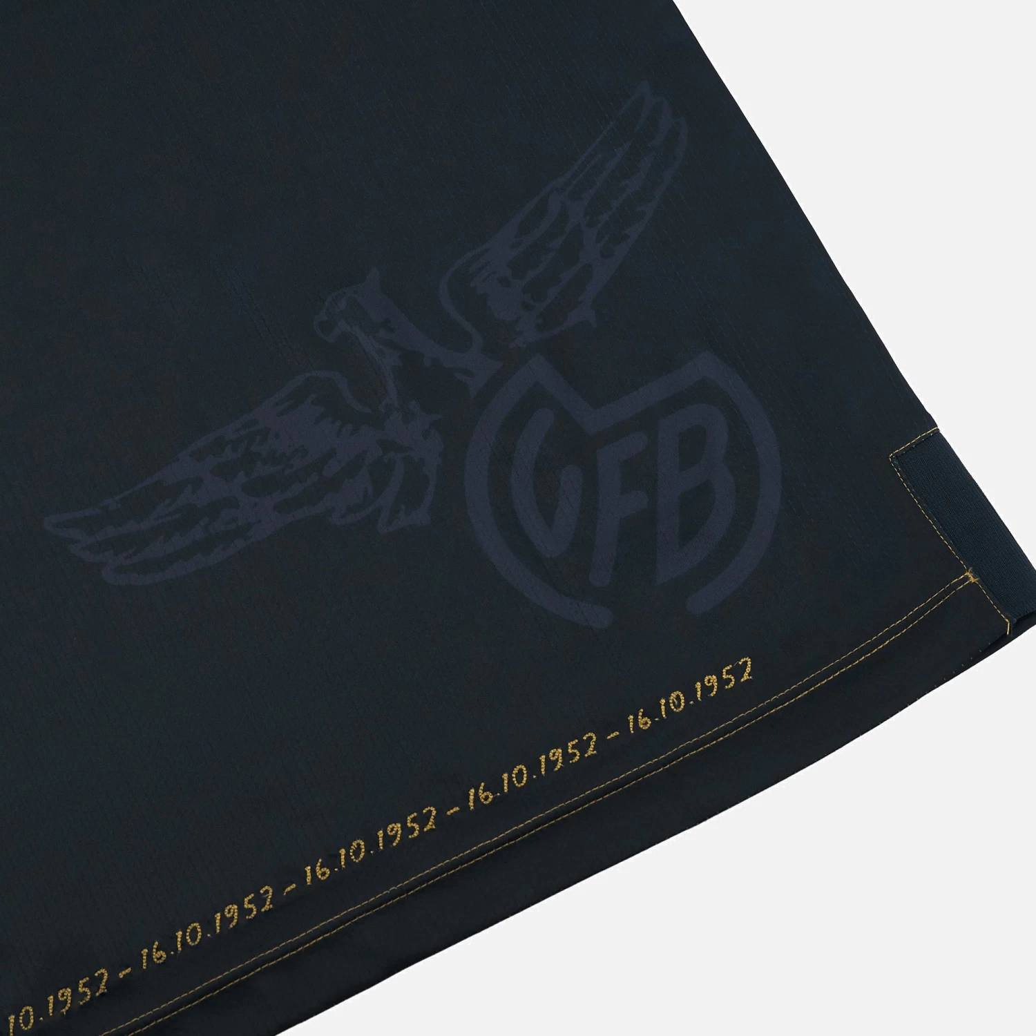 16.10.1952 is the date emblazoned on the badge specially designed to celebrate the 70th anniversary of Karlsruher SC, which appears in the middle of the chest of this special anniversary shirt. Designed in Eco Softlock with mesh inserts, the shirt comes in a feisty shade of plain-dye navy blue with stylish gold stitching. The date of the anniversary is repeated on the back just above the shirt hem. The back of the collar, meanwhile, is embellished with the wording MEINE HEIMAT.