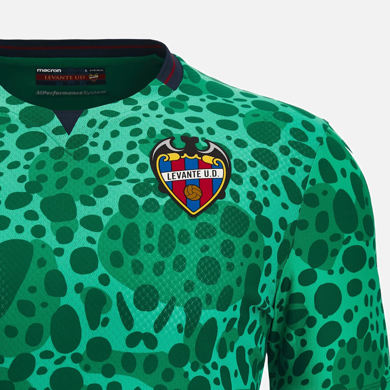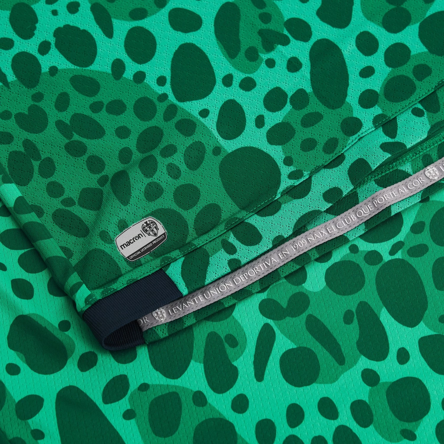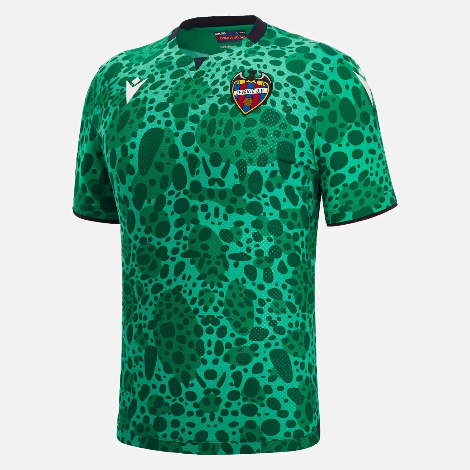Designed for making a dazzling impression. The Levante 2022/23 third match shirt is truly original, with an all-over pattern that resembles the skin of a frog, the club symbol and mascot. Levante fans are indeed endearingly nicknamed ‘los granotes’, meaning the frogs. The collar adds the club colours of blue and red to the green shirt, creating an attractive play on colour. If you want to be ready to impress, this is the shirt to have to support your favourite team throughout the new football season!