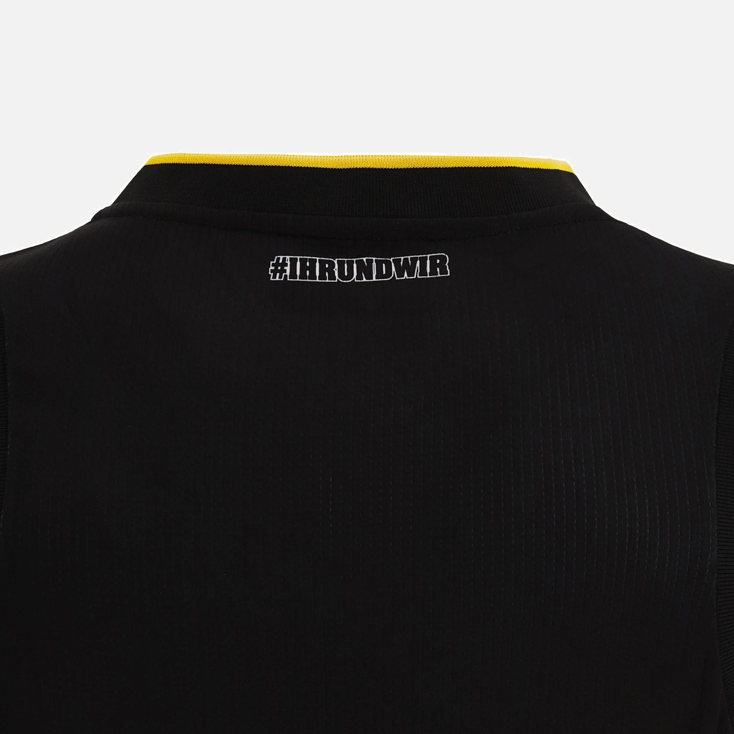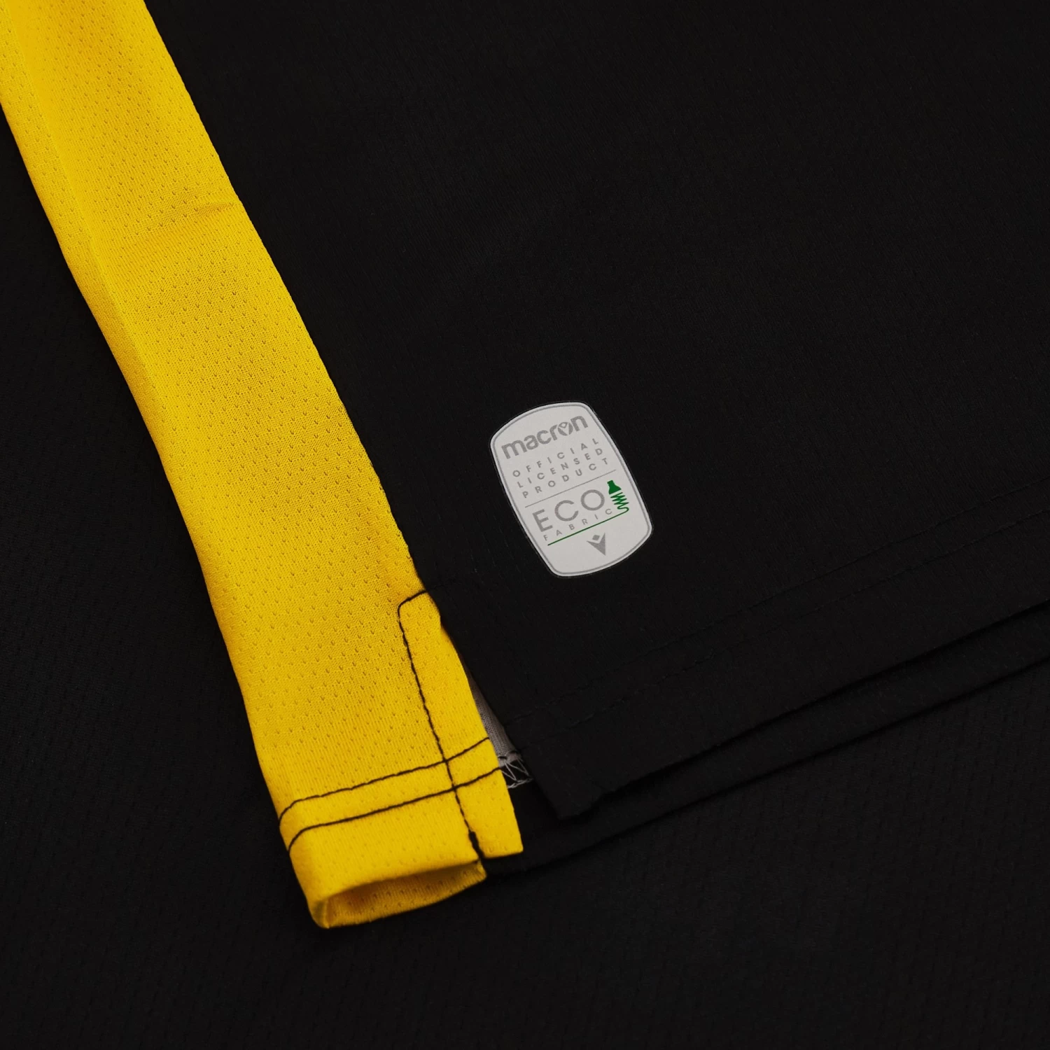 Classic design for a shirt that’s all set to dominate a new playing season. The MHP Riesen Ludwigsburg 2022/23 away vest in the traditional black colour comes in eco micromesh fabric for guaranteed coolness and breathability. Stylish yellow detailing on the collar and sides adds a smart finishing touch.