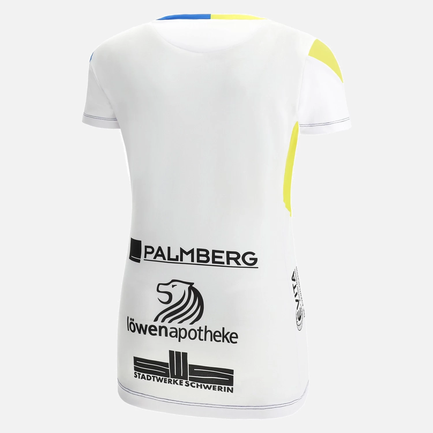 The new Palmberg Schwerin 2021/22 libero shirt comes in white featuring an original design thanks to a band down the left side featuring the names of all the players. The front of the shirt is also embellished with the club badge on the left breast.