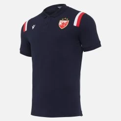 Red Star Belgrade 2020/21 travel polo shirt, navy blue with soft knit details. Elegant and easy to combine.