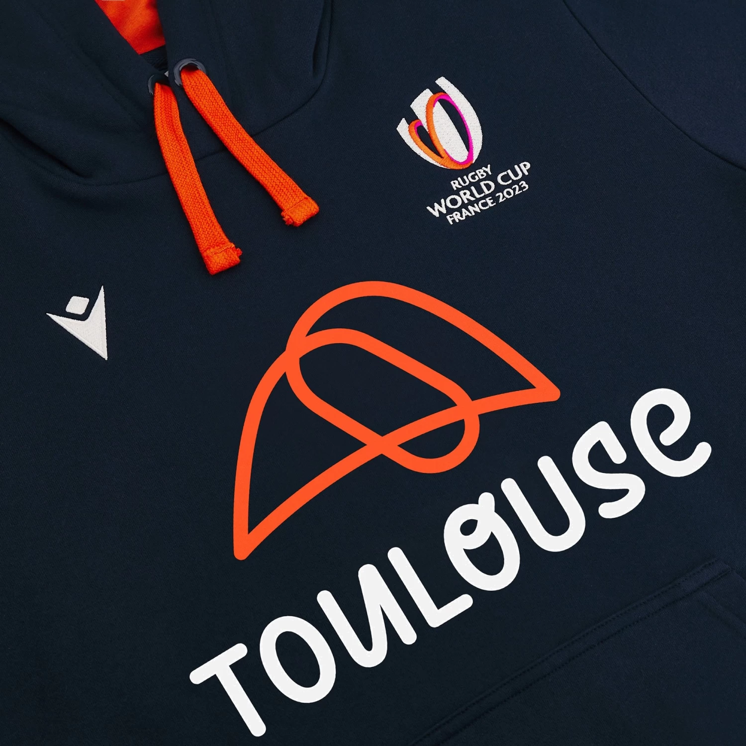 Ready to conquer the field, with style. Wear the Rugby World Cup France 2023 adults’ cotton hooded sweatshirt. The event logo is embroidered on the left side, the Macron logo is embroidered on the right side.