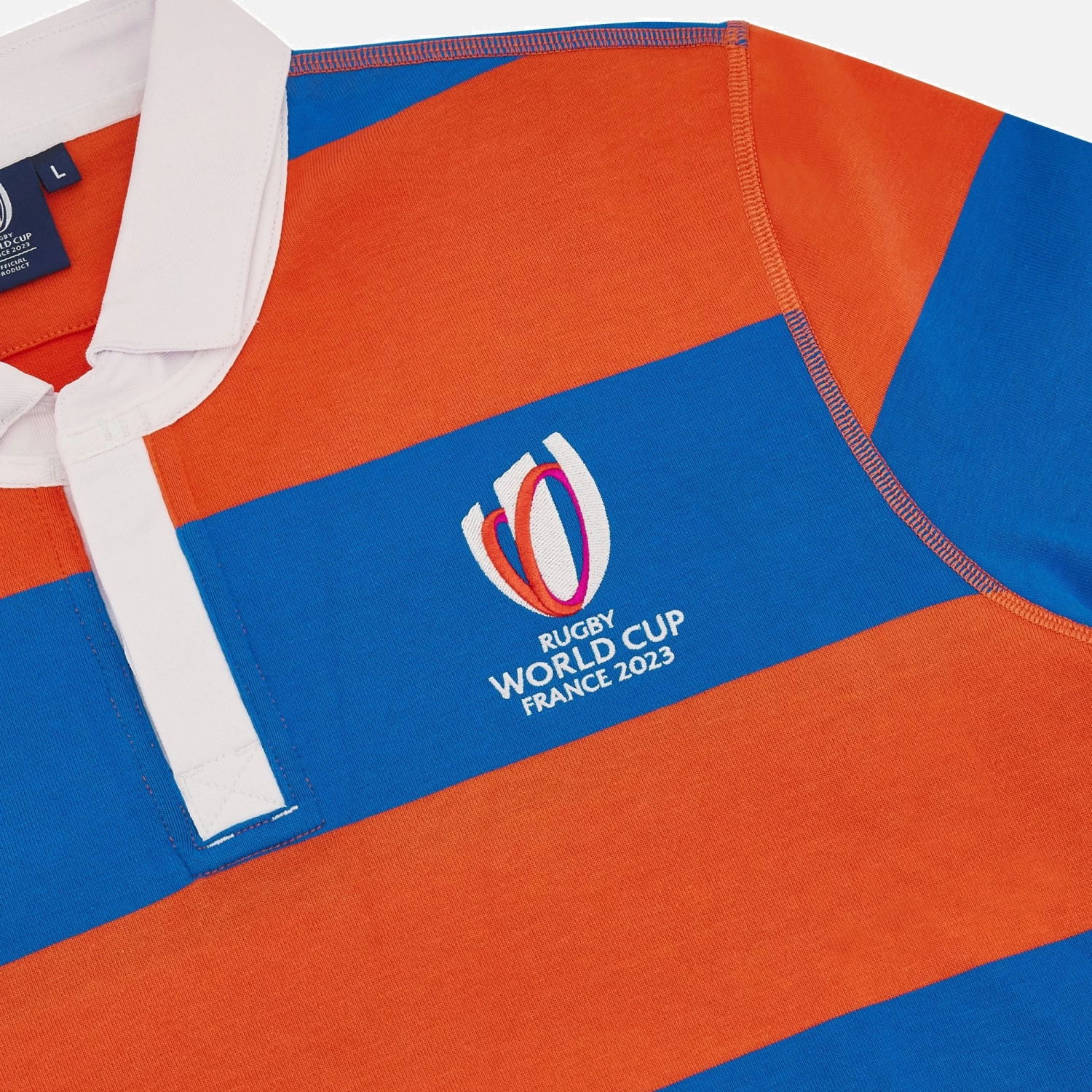 Ready to conquer the field, with style. Wear the Rugby World Cup France 2023 adults’ cotton polo shirt. The event logo is embroidered on the left side, the Macron logo is embroidered on the right side.