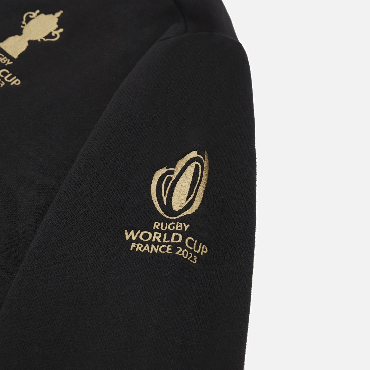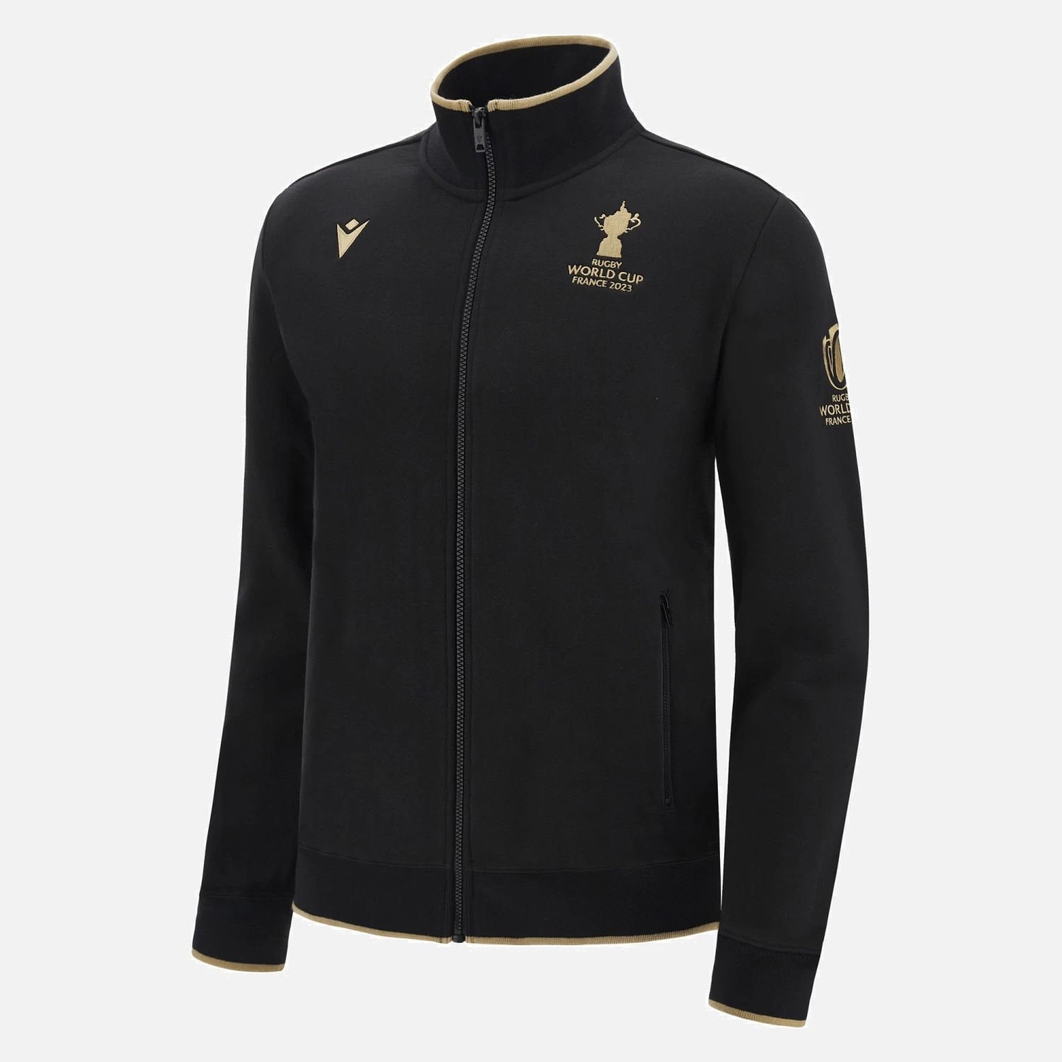 Ready to conquer the field, with style. Wear the Rugby World Cup France 2023 adults’ full zip cotton sweatshirt. The event logo is embroidered on the left sleeve, the Macron logo is embroidered on the right side.