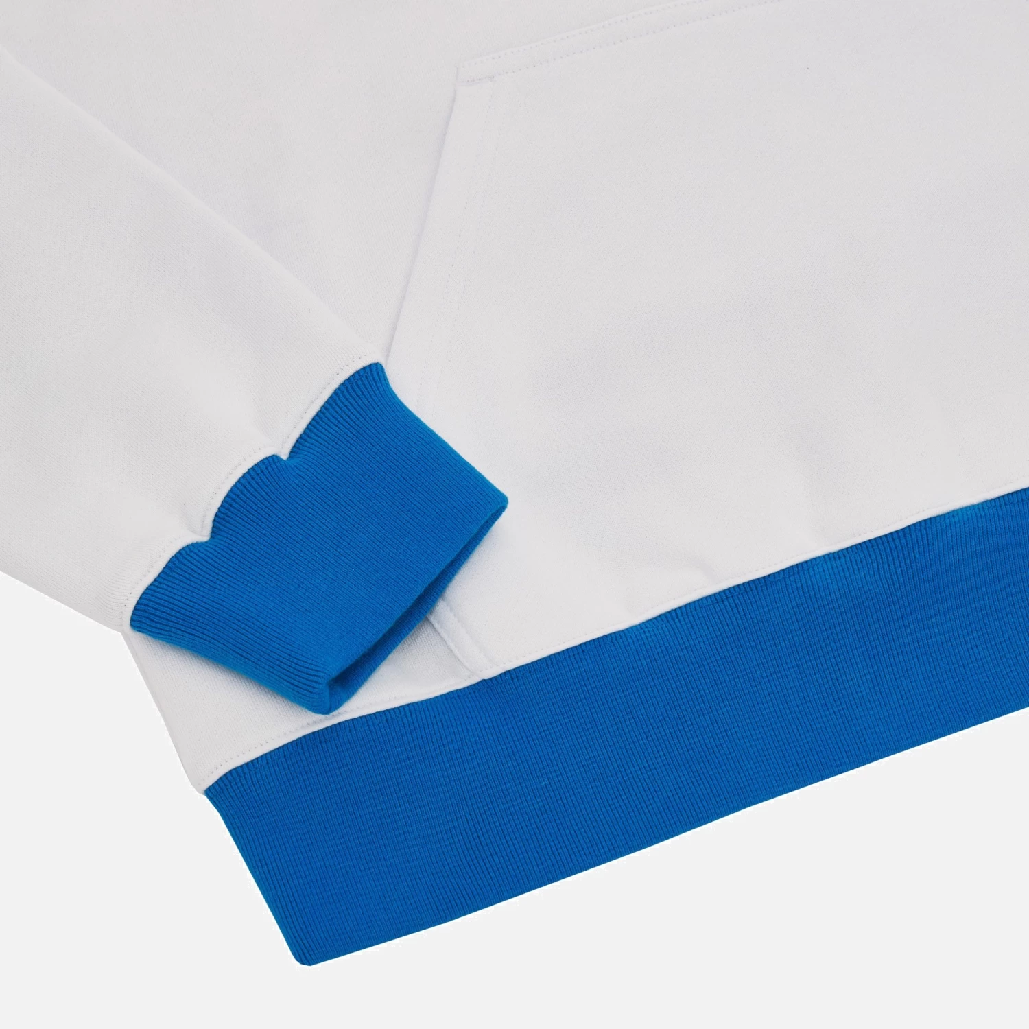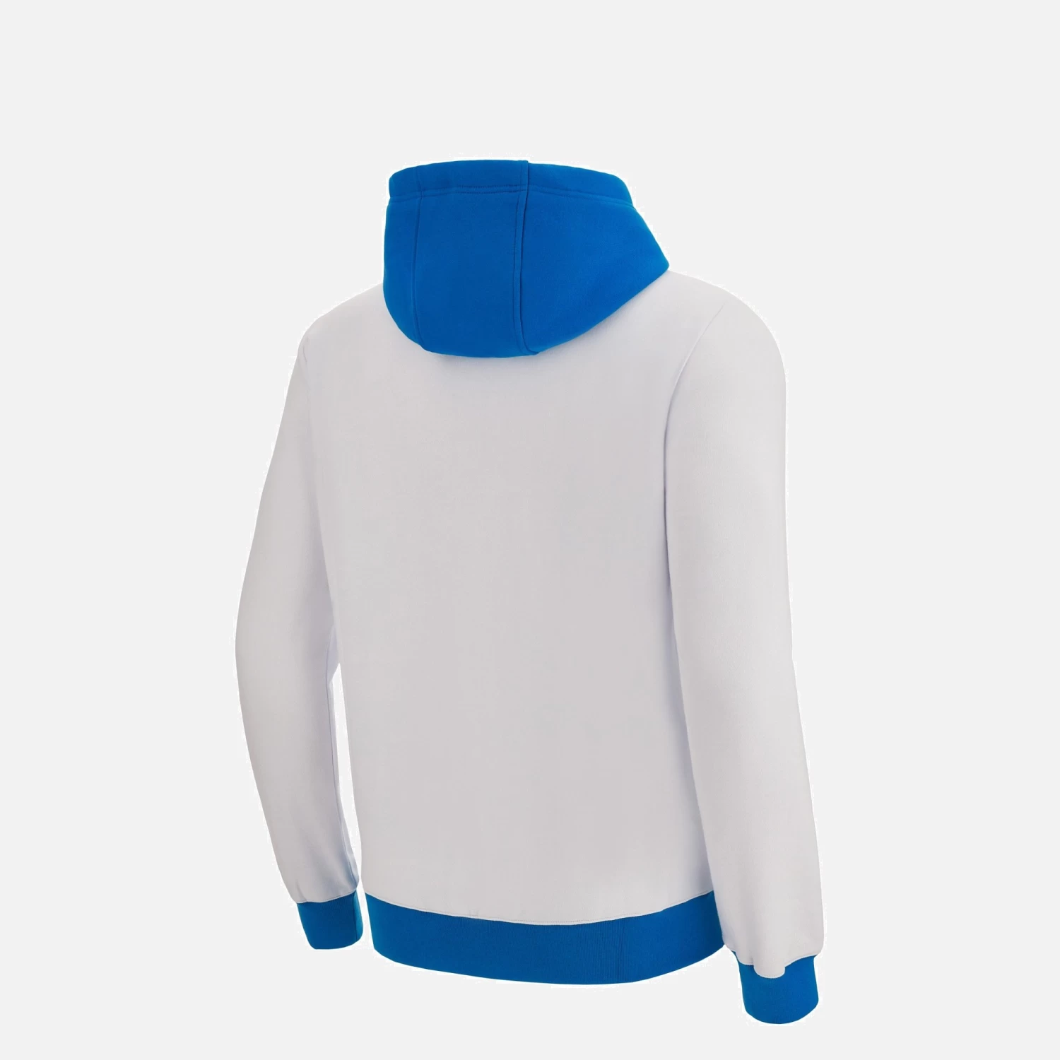 Ready to conquer the field, with style. Wear the Rugby World Cup France 2023 junior cotton hooded sweatshirt. The event logo is embroidered on the left side, the Macron logo is embroidered on the right side.