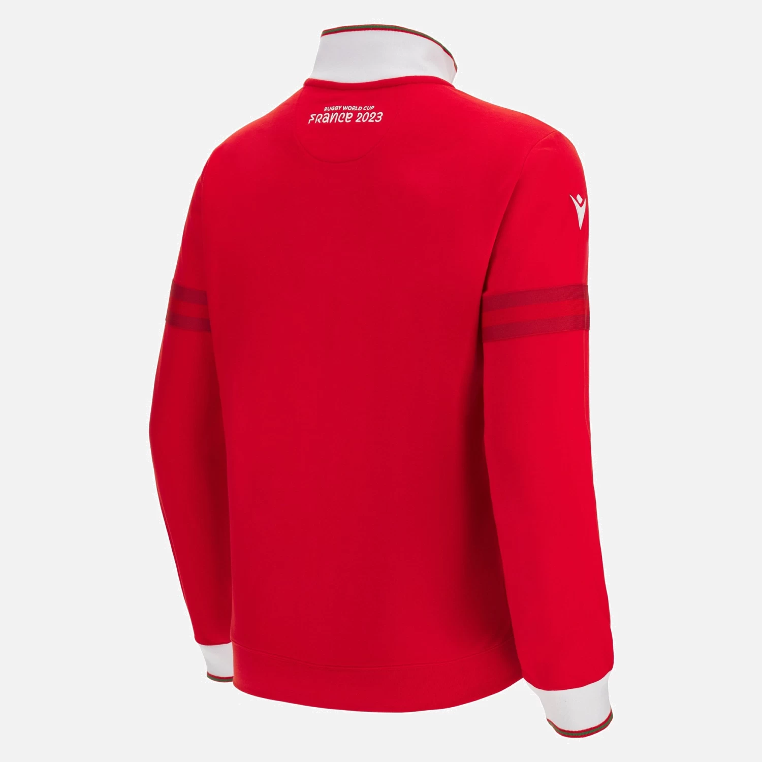 Ready to conquer the field, with style. Wear the Rugby World Cup France 2023 adults’ full zip cotton sweatshirt. The event logo is embroidered on the front, the Macron logo is embroidered on the right sleeve, the club logo is embroidered on the left front.