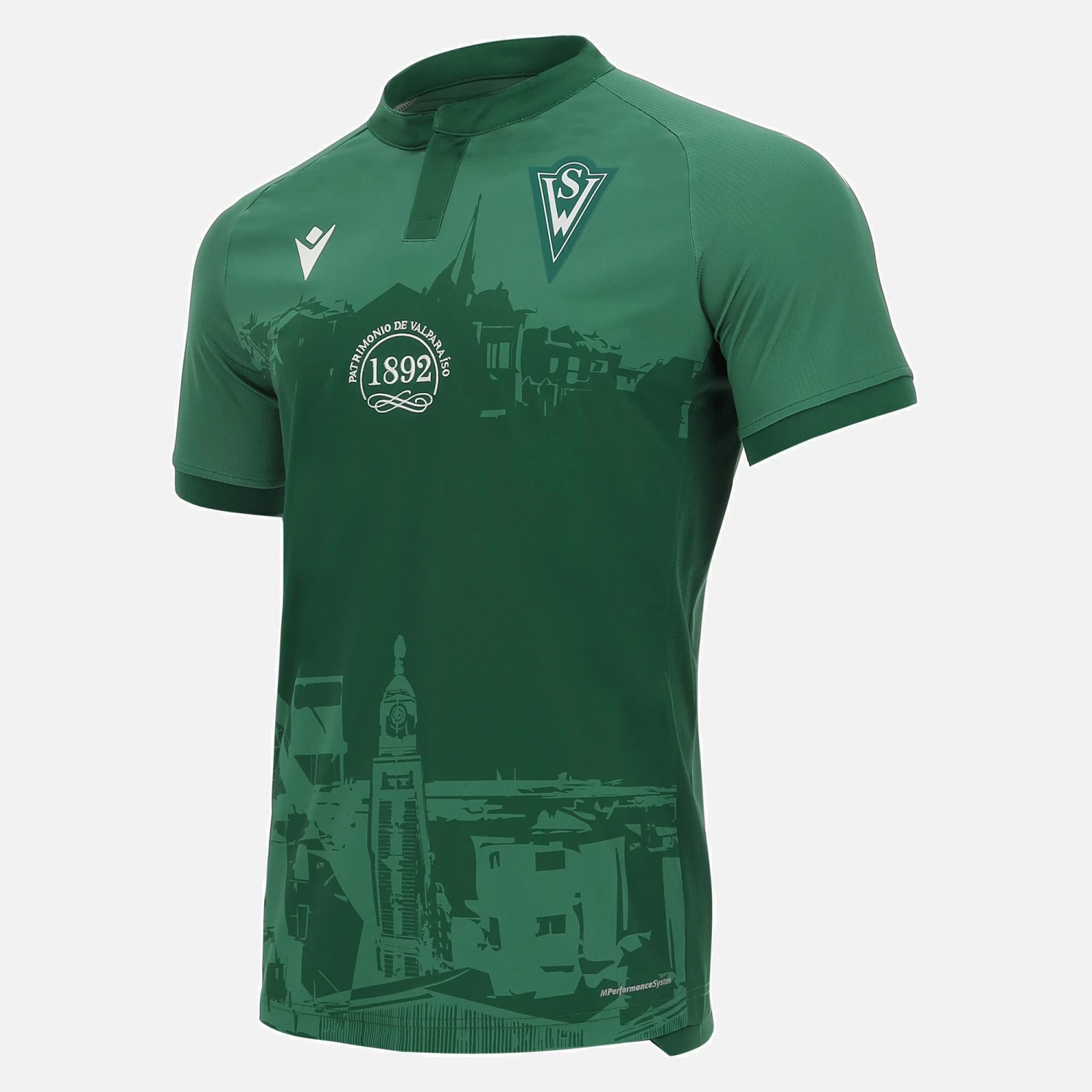 The new Santiago Wanderers 2021/22 home jersey comes in a bold, original green with white details. Dye-sublimation print of the city of Santiago on the front, with the club badge on the left breast and five white stars on the back, just below the collar.
