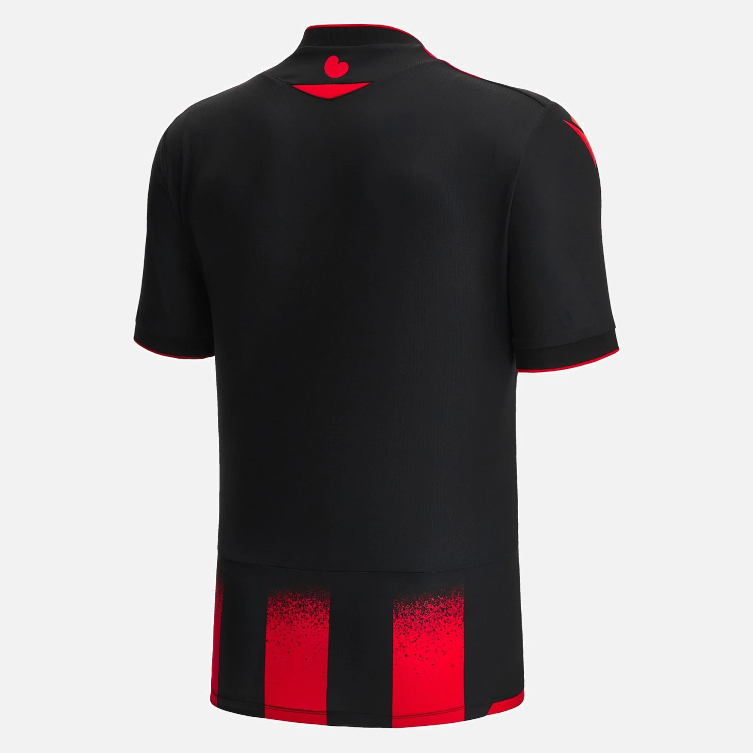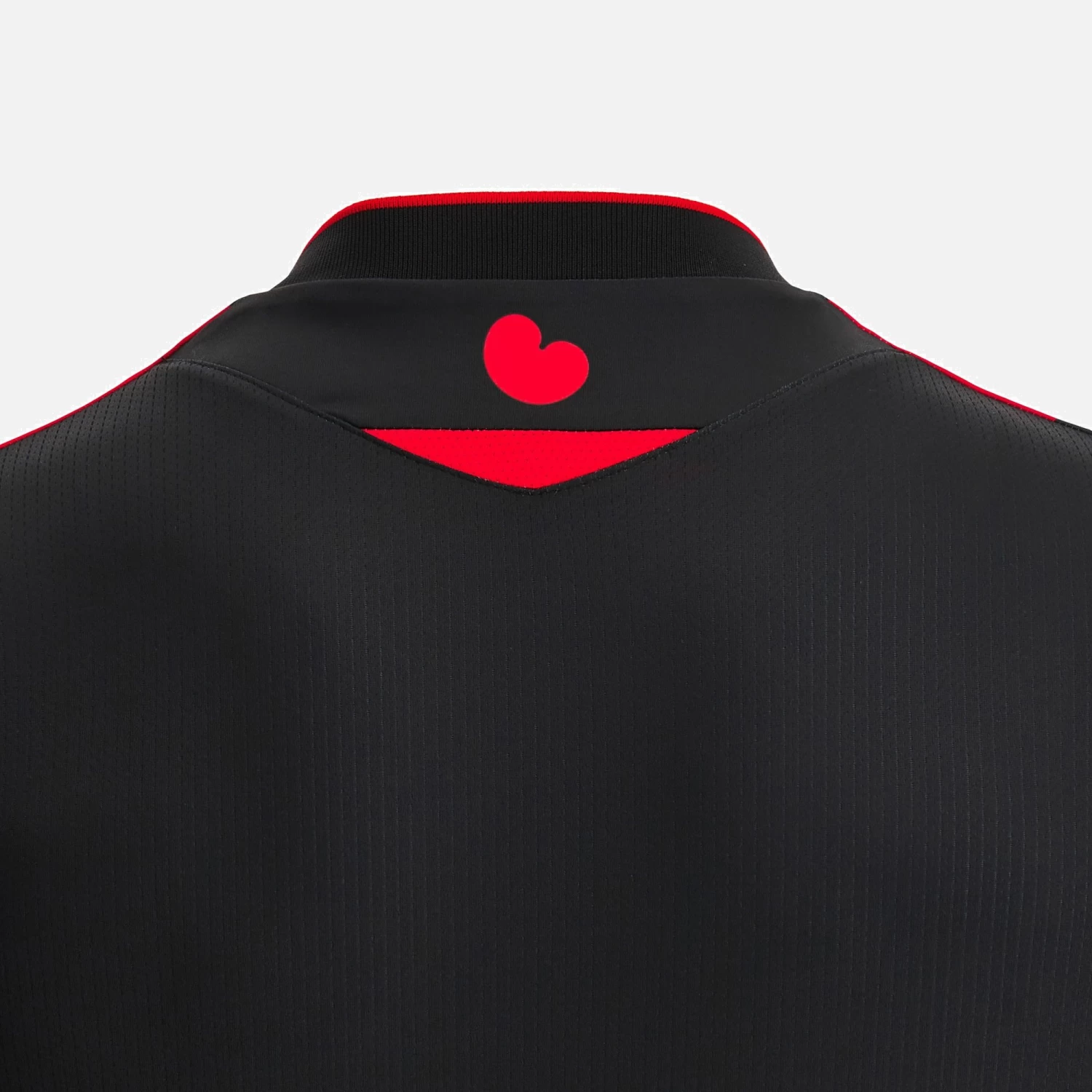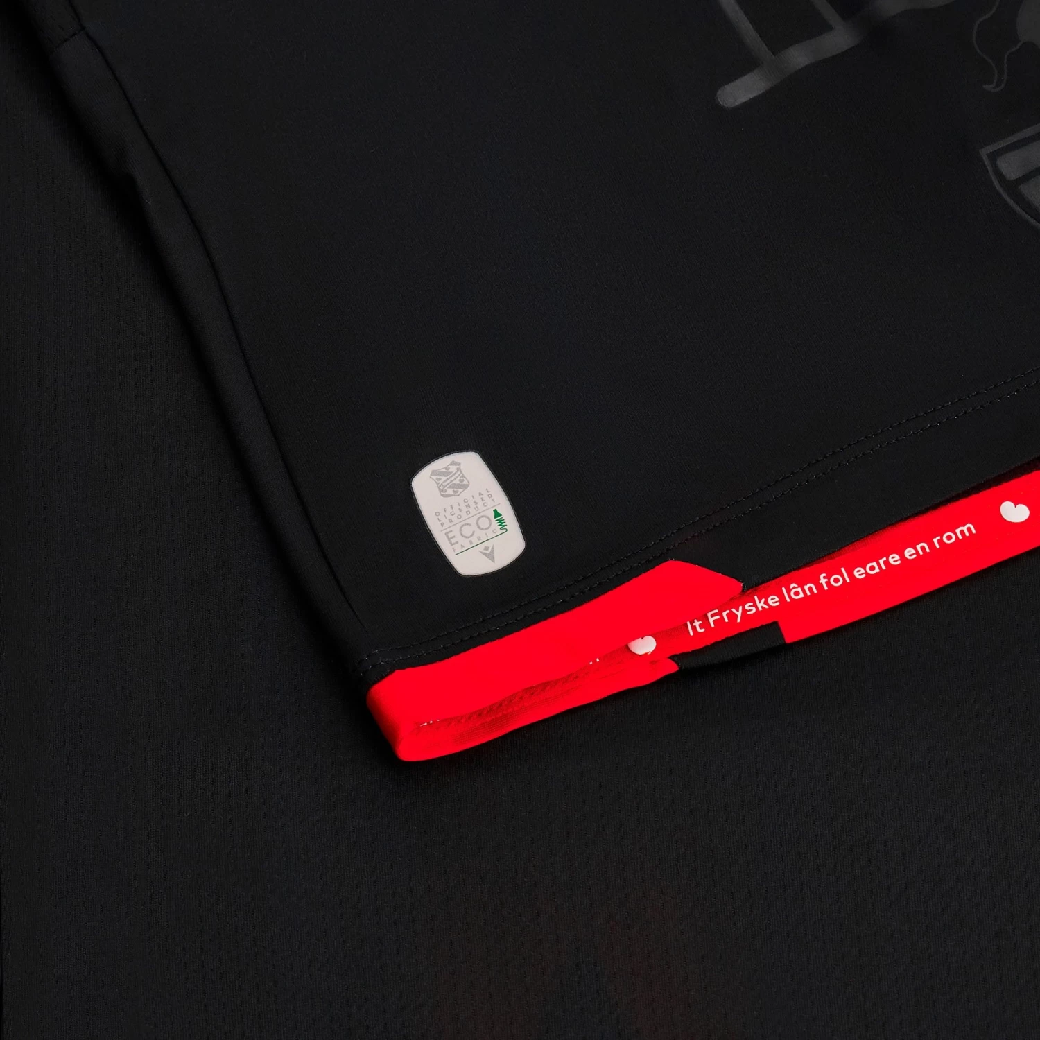 Herenveen knows how to get noticed even on opponents’ home turf. And now even more so with the new away jersey developed by Macron for the 2022/23 football season. The chosen colours of red and black stand out and express feistiness and sacrifice. The 3 central upper bands are shaded on the chest, contrasting with the embossed design of a ship front-bottom. The inside hemline features a tape with the wording It Fryske lân fol eare en rom. The collar with central notch adds even more feistiness to a shirt designed to impress.