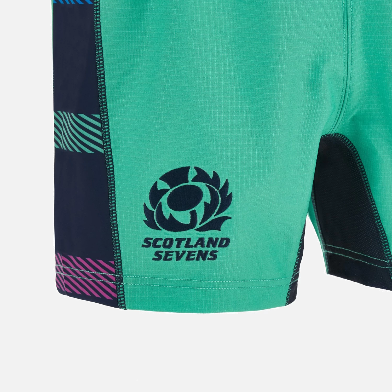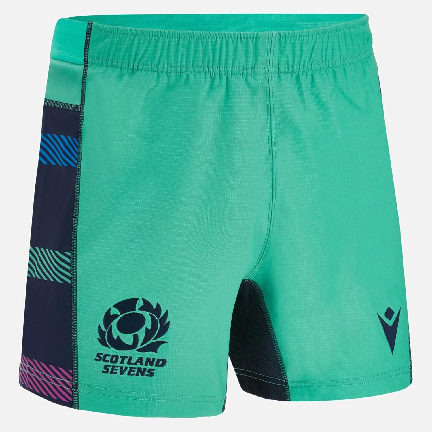 Official Away 7s Match Shorts for the 2022/23 season. Green shorts with blue, purple and navy stripes on the flanks, stretch panels and embroidered badges.