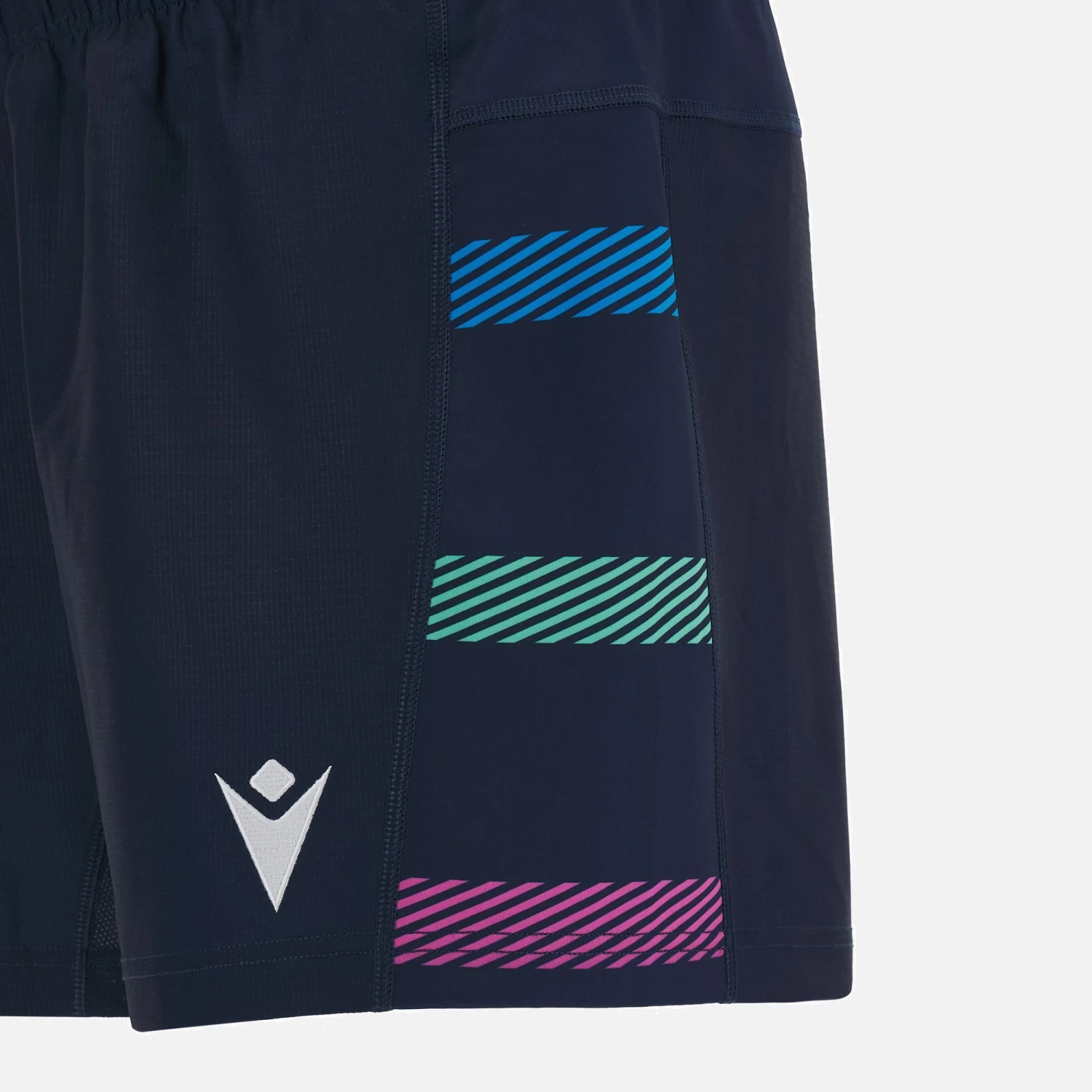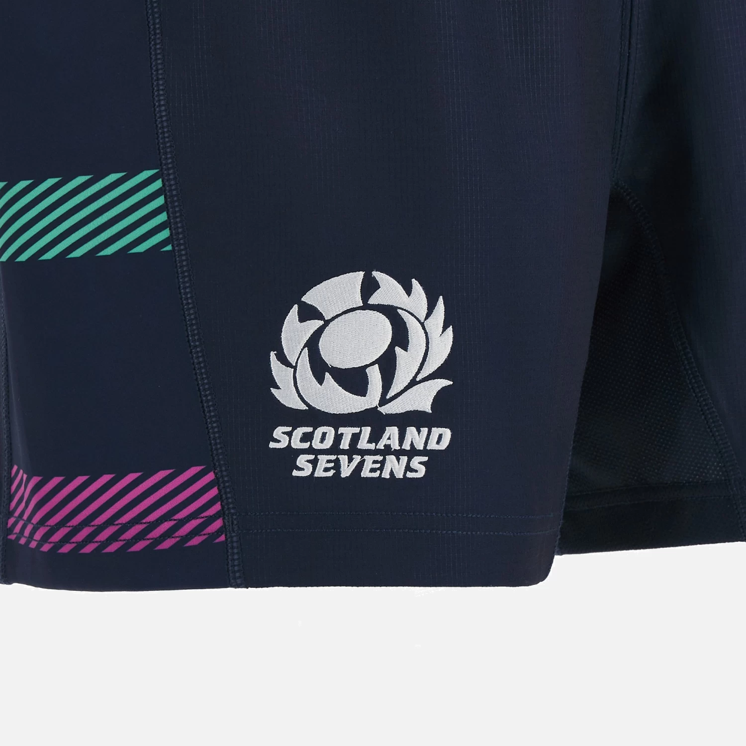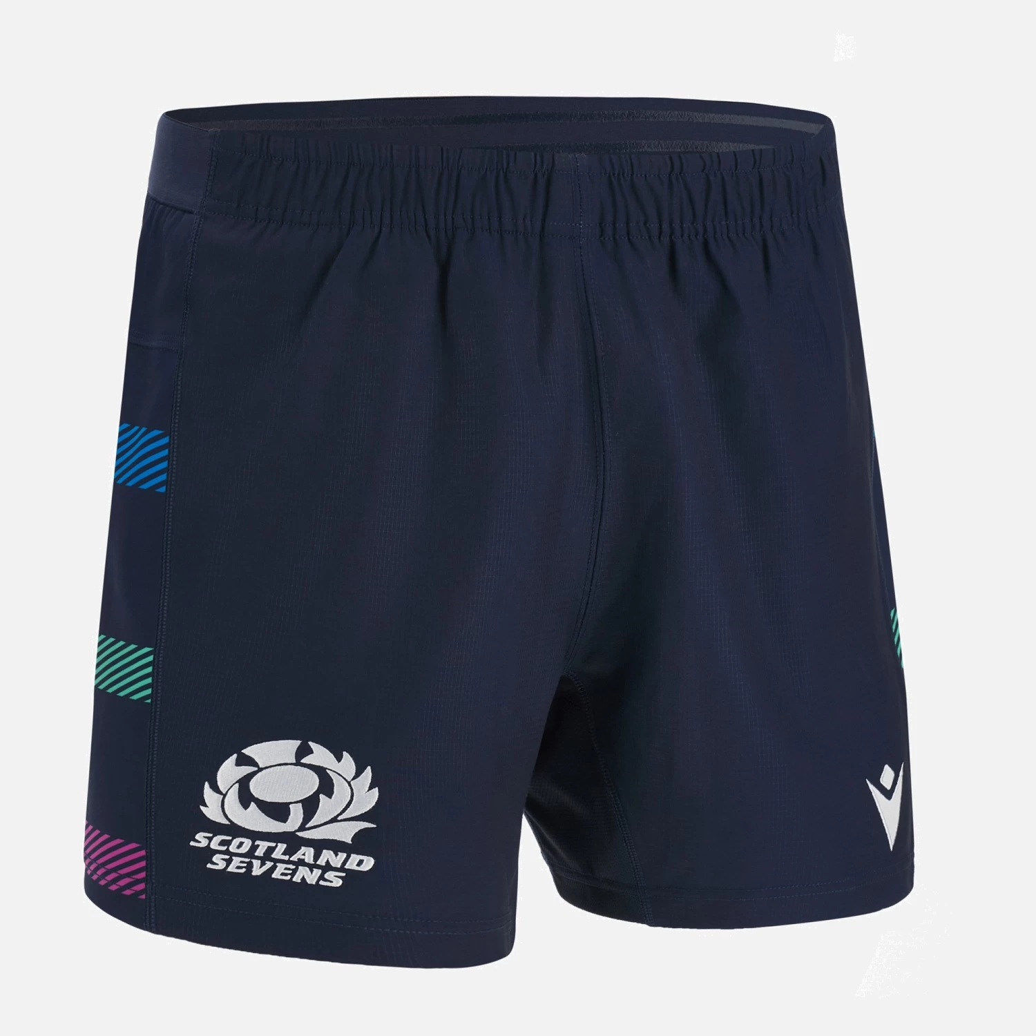 Official Home 7s Match Shorts for the 2022/23 season. Navy shorts with blue, purple and green stripes on the flanks, stretch panels and embroidered badges.