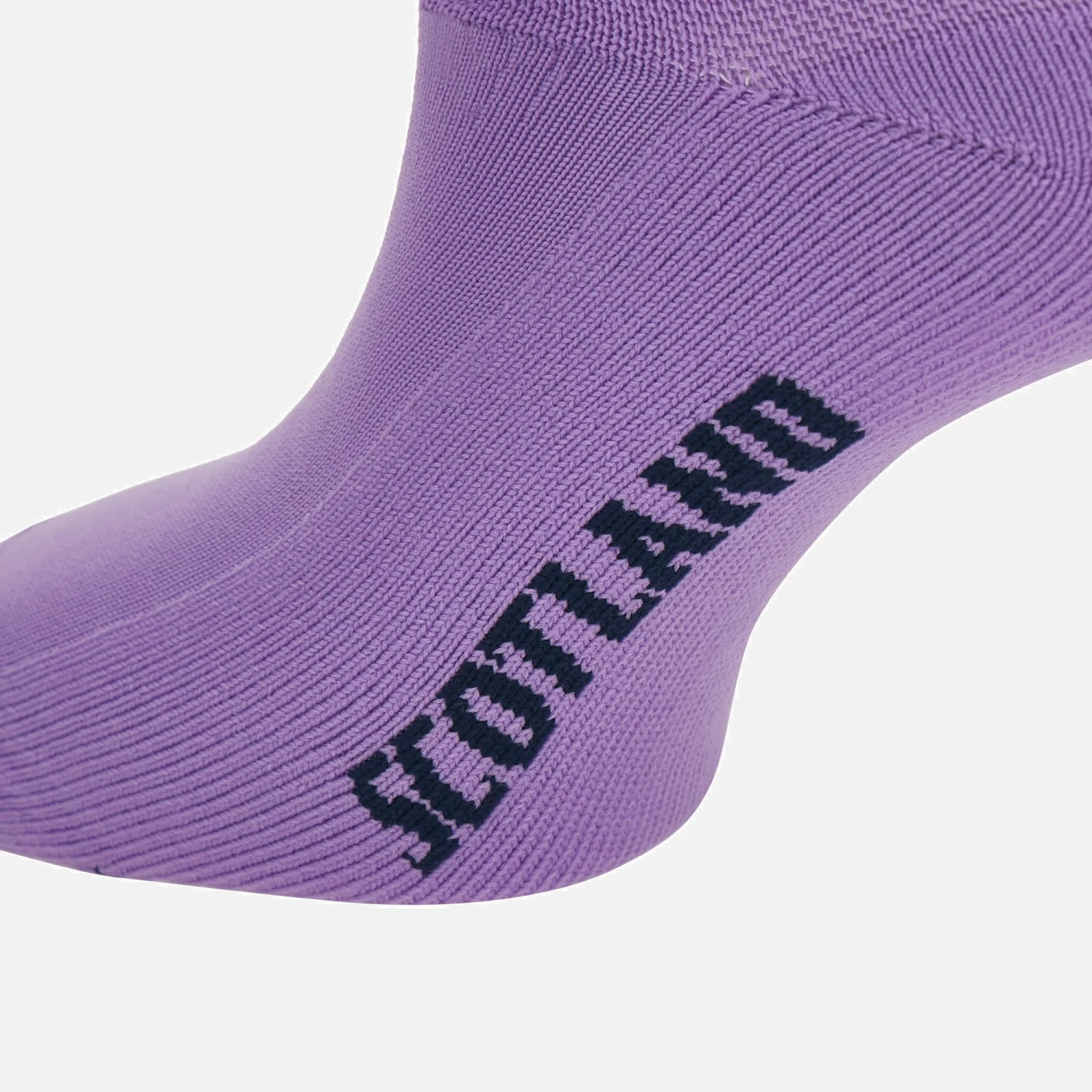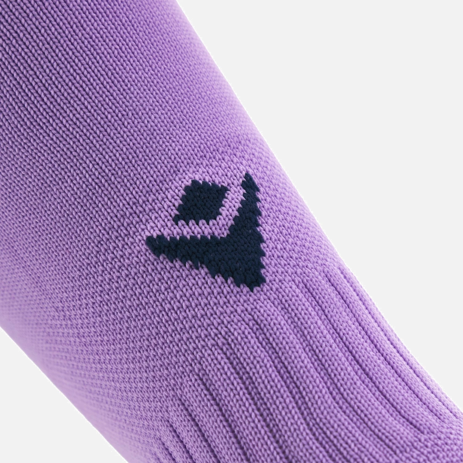 Purple socks with navy cuffs and purple pinstripes and built in arch support. Shoe sizes: 12-2 KID, 2-6 – JR, 6-10 – SR & 10-14 – SR-XL
