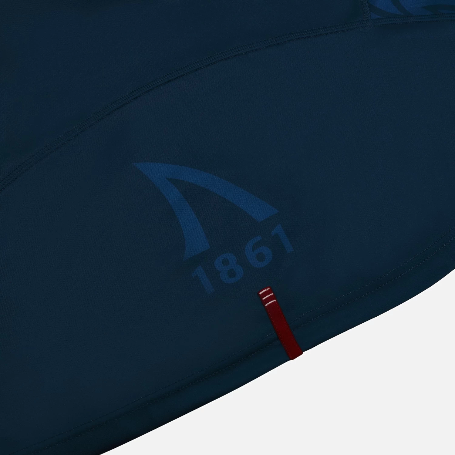 The Official Sale Sharks Home Replica Jersey for the 2022/23 season. Navy shirt with white collar and cuffs, tone on tone ‘fin’ pattern embossed over the shoulders and white club badge over the heart. This shirt is standard fit, with short sleeves and produced using polyester making it perfect for cheering on the squad from the stands.