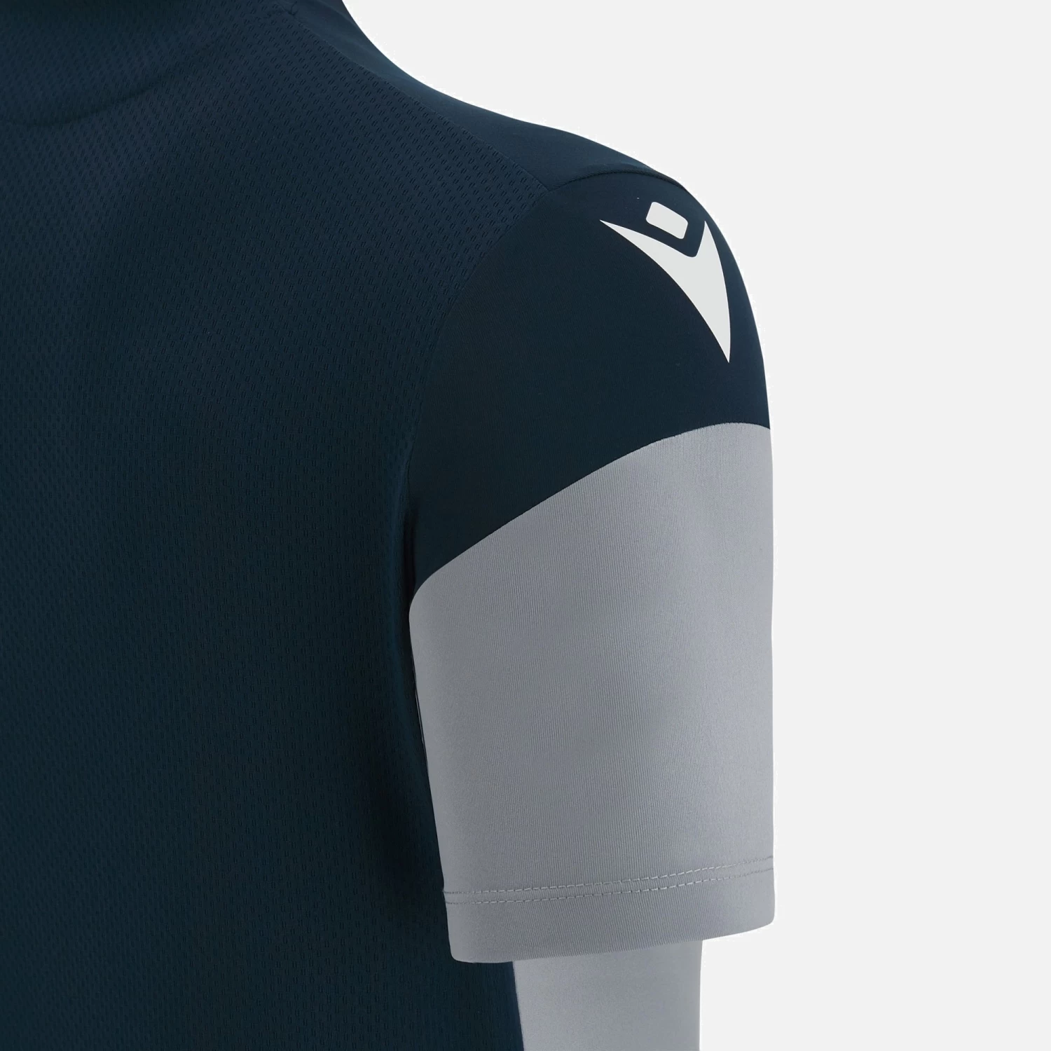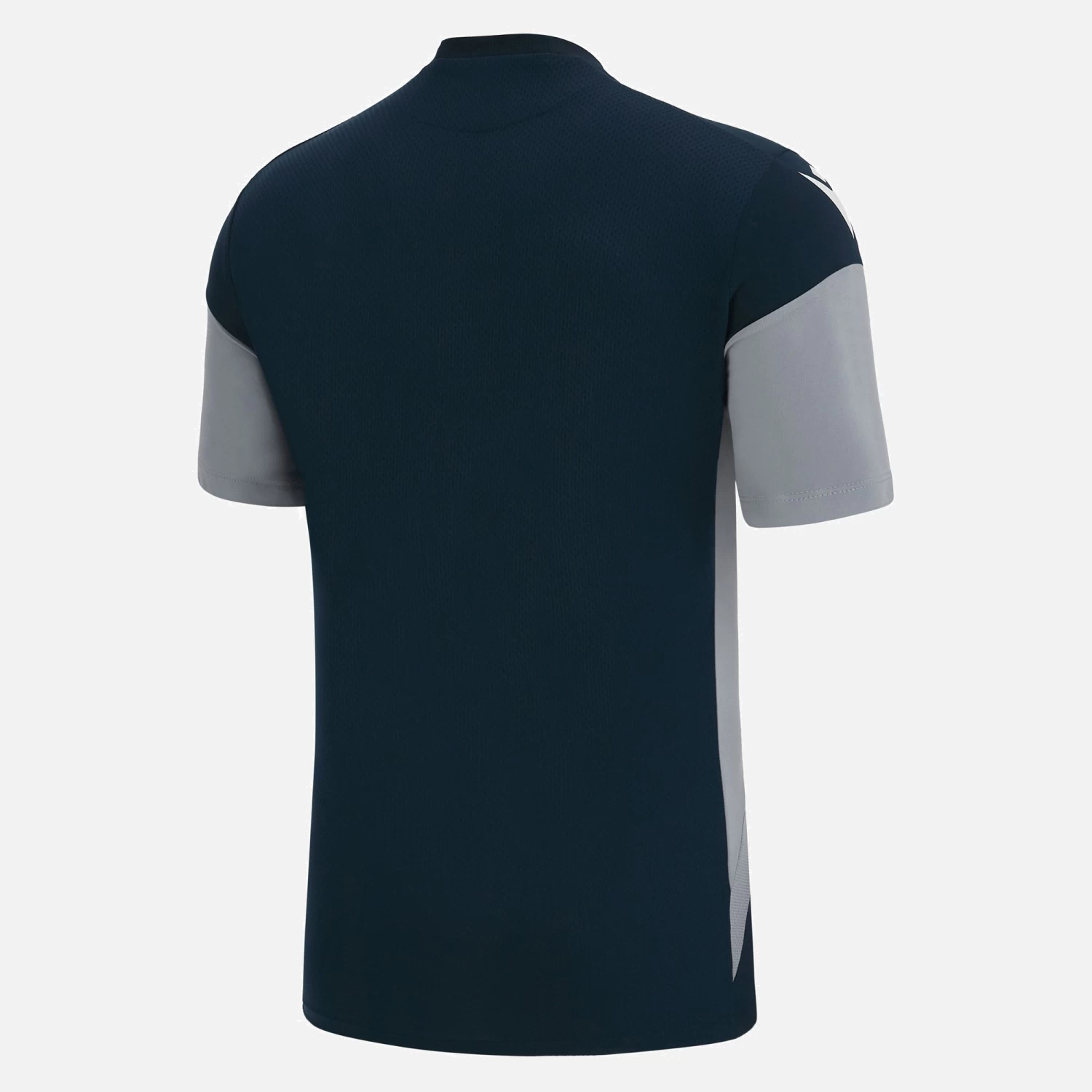 Lightweight navy and grey short sleeve poly training tee, with mesh back and white printed club badges.