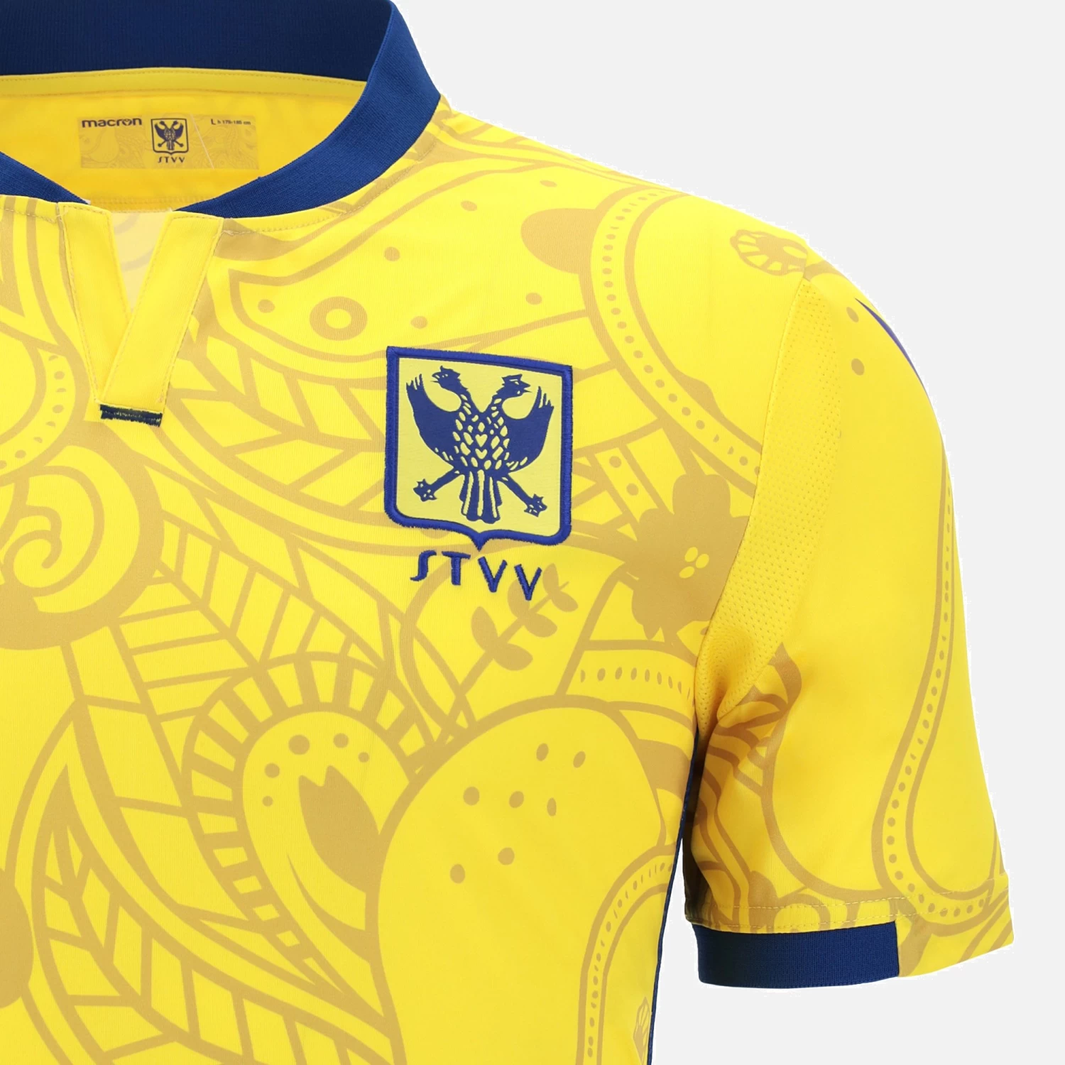 The new Sint Truidense 2021/22 home jersey stands out thanks to its sophisticated and elaborate graphic design. Featuring the official team colours, the garment is embellished with a shield badge on the left breast.