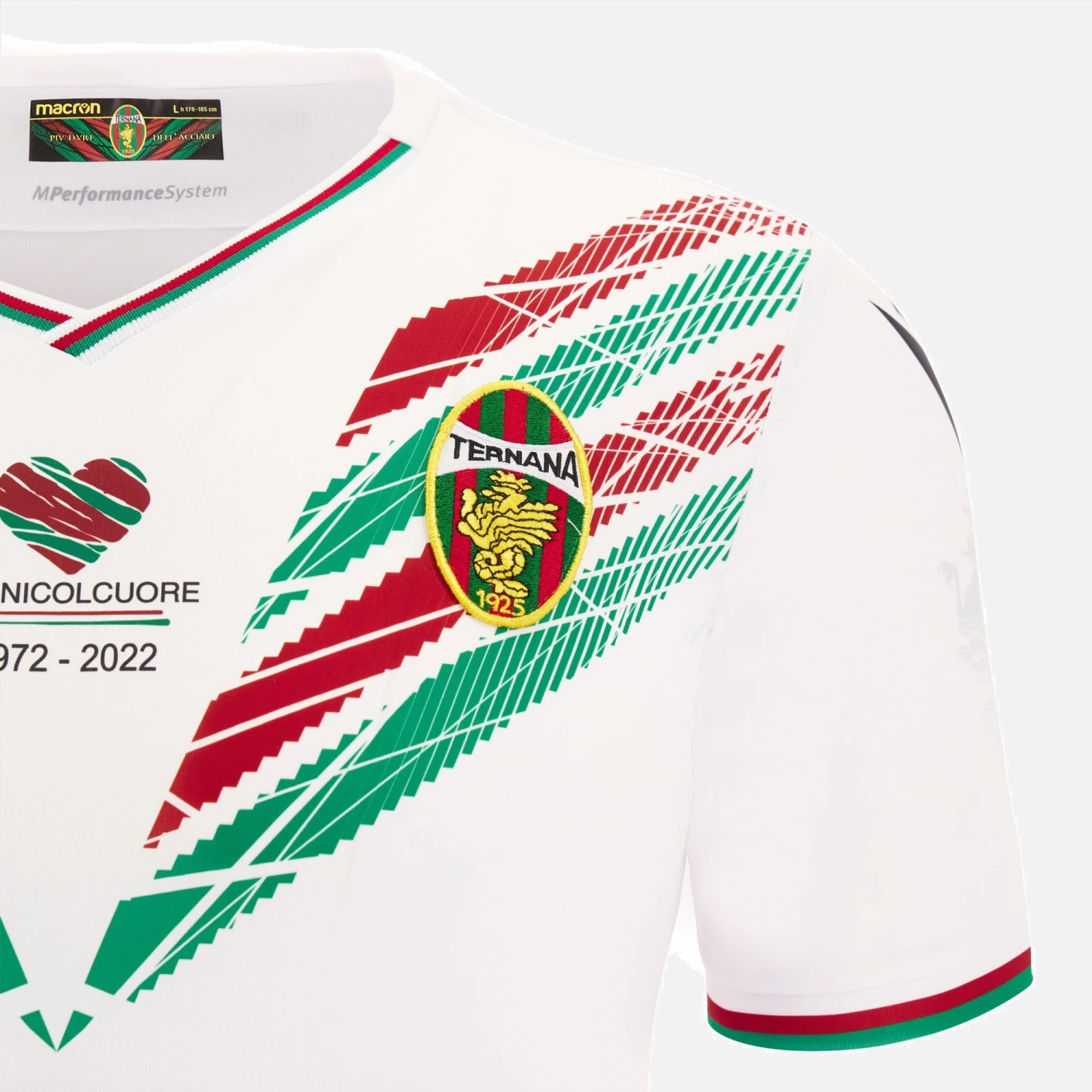 Stylish and original, the new Ternana Calcio 2022/23 away jersey is all-white with a dye-sub optical detail at the top which introduces the club colours. A lion, a symbol of the team, appears on the right sleeve, also in a dye-sub print.