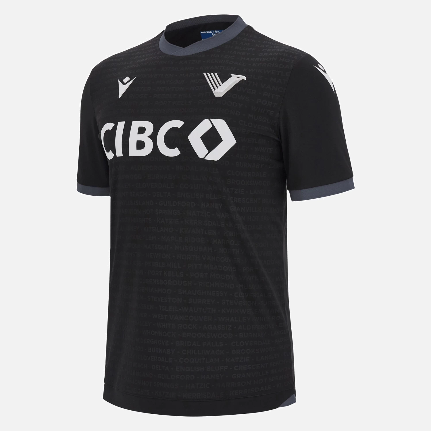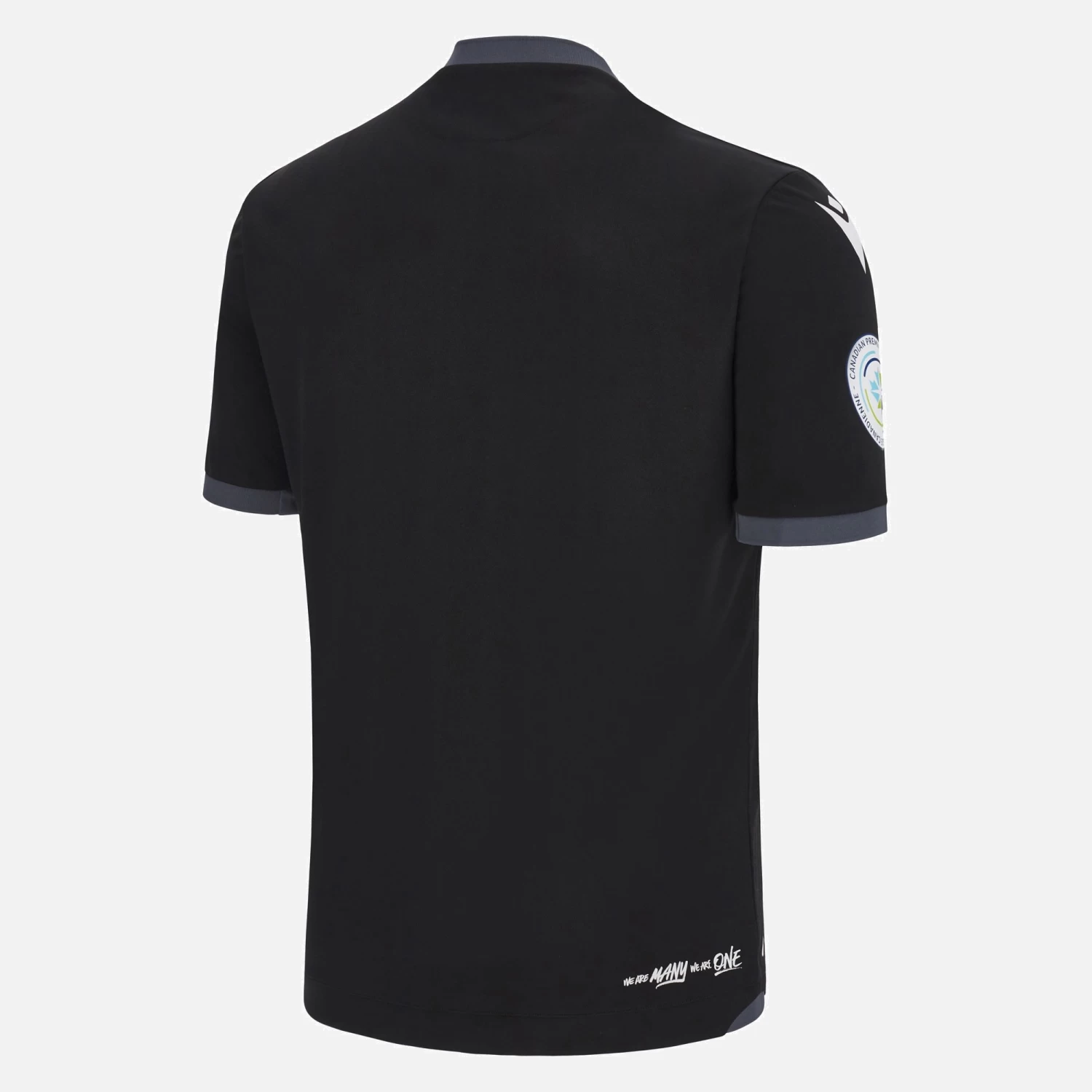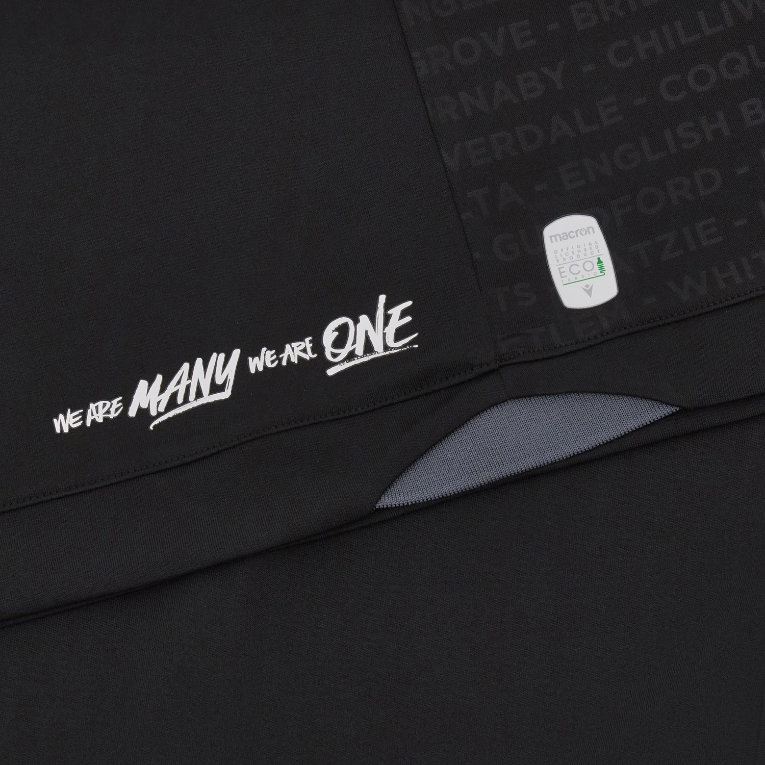 The new Vancouver FC 2023/24 home jersey features a simple, stylish design. The main colour is black and the print is embossed on the front. It is made from Eco Softlock fabric, with eco mesh inserts, and is enhanced by a comfortable crew neck. The motto WE ARE MANY WE ARE ONE appears on the back of the shirt at the bottom.