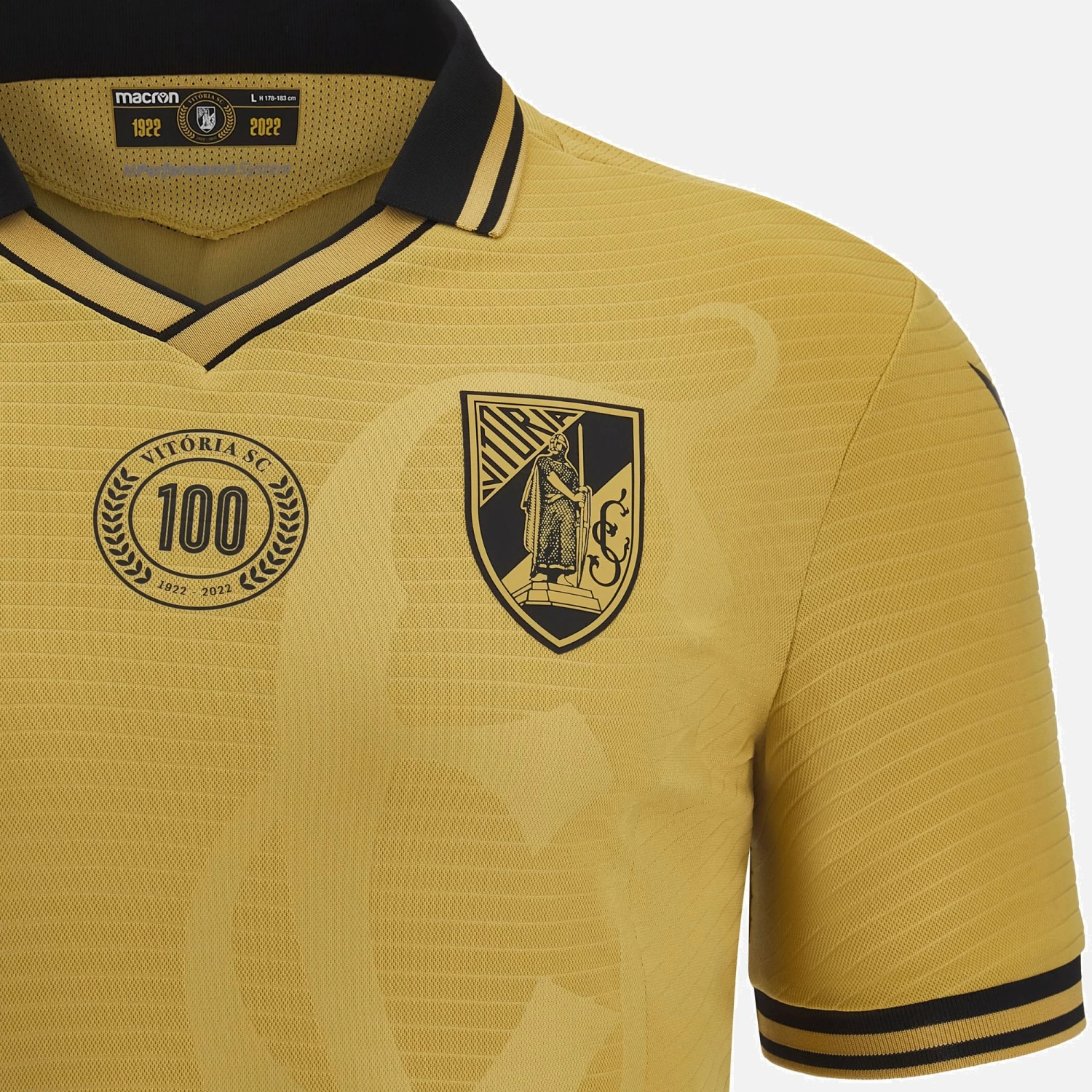 If you’re looking for a special, unique design, the Vitória SC 2022/23 third match shirt is a must. It features an embossed print consisting of more than 100 wavy stripes symbolising the club’s centenary anniversary. The macro initials ‘VSC’ embossed in italics add a stylish touch. On the back of the collar the black logo with the crown formed by the walls of Guimarães castle and the date of the centenary adds another stylish detail, in addition to paying tribute to the club. The polo shirt design makes this third match shirt an absolute must-have garment for the 2022/23 season.