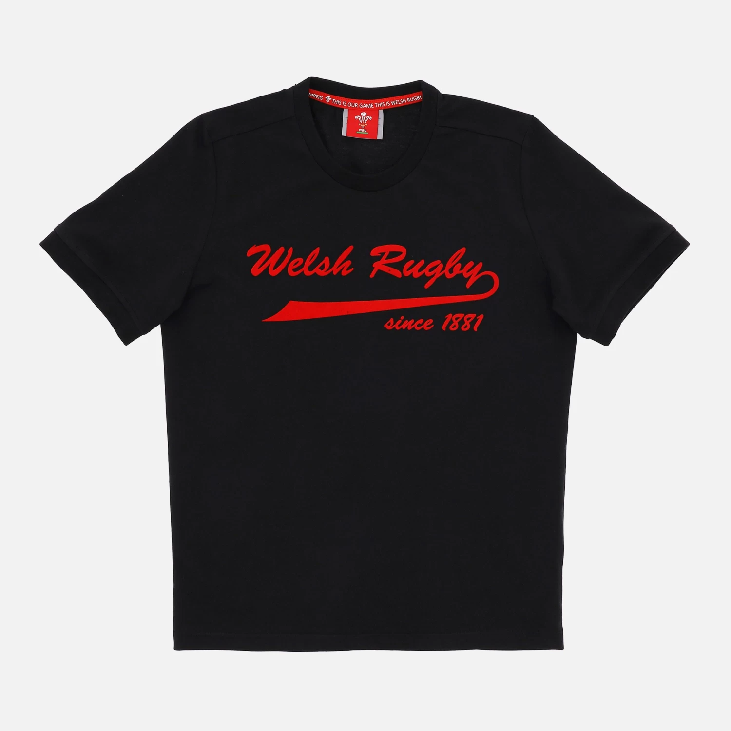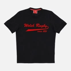 Welsh Rugby Union 2020/21 cotton jersey children’s fan t-shirt in black with WELSH RUGBY printed in red in the centre. Ideal for a casual style for leisure time.