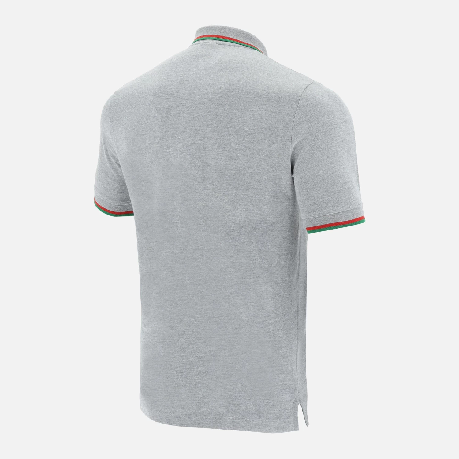 Welsh Rugby Union 2020/21 piquet cotton fan’s polo shirt, lightweight and stylishly elegant. Melange grey with small red and green details on the collar and cuffs.