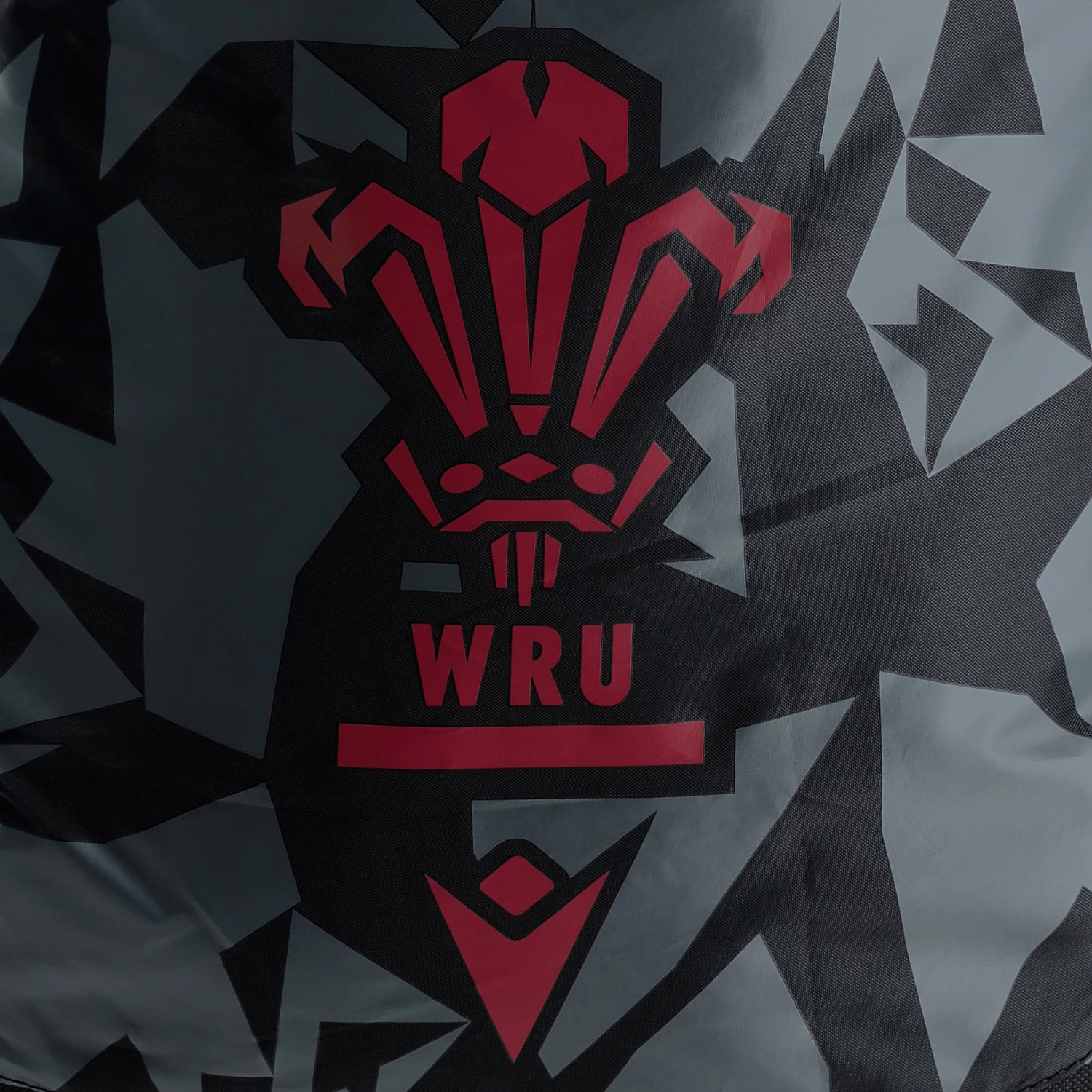 Black and grey patterned drawstring gym bag with red printed club crest. (38x50x2cm – 9.5lt)