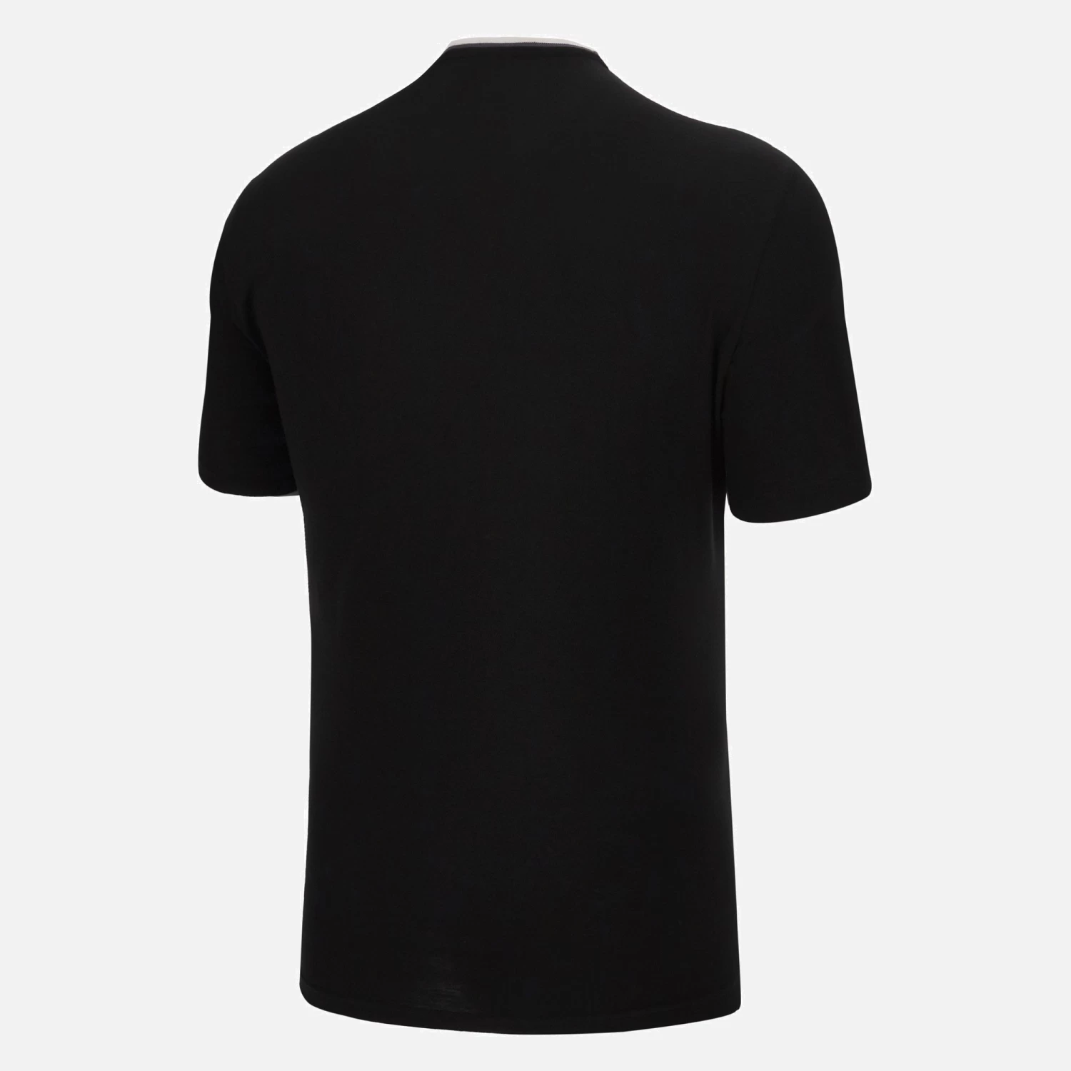 Black polycotton tee with charcoal piping and embroidered Welsh Rugby crest.