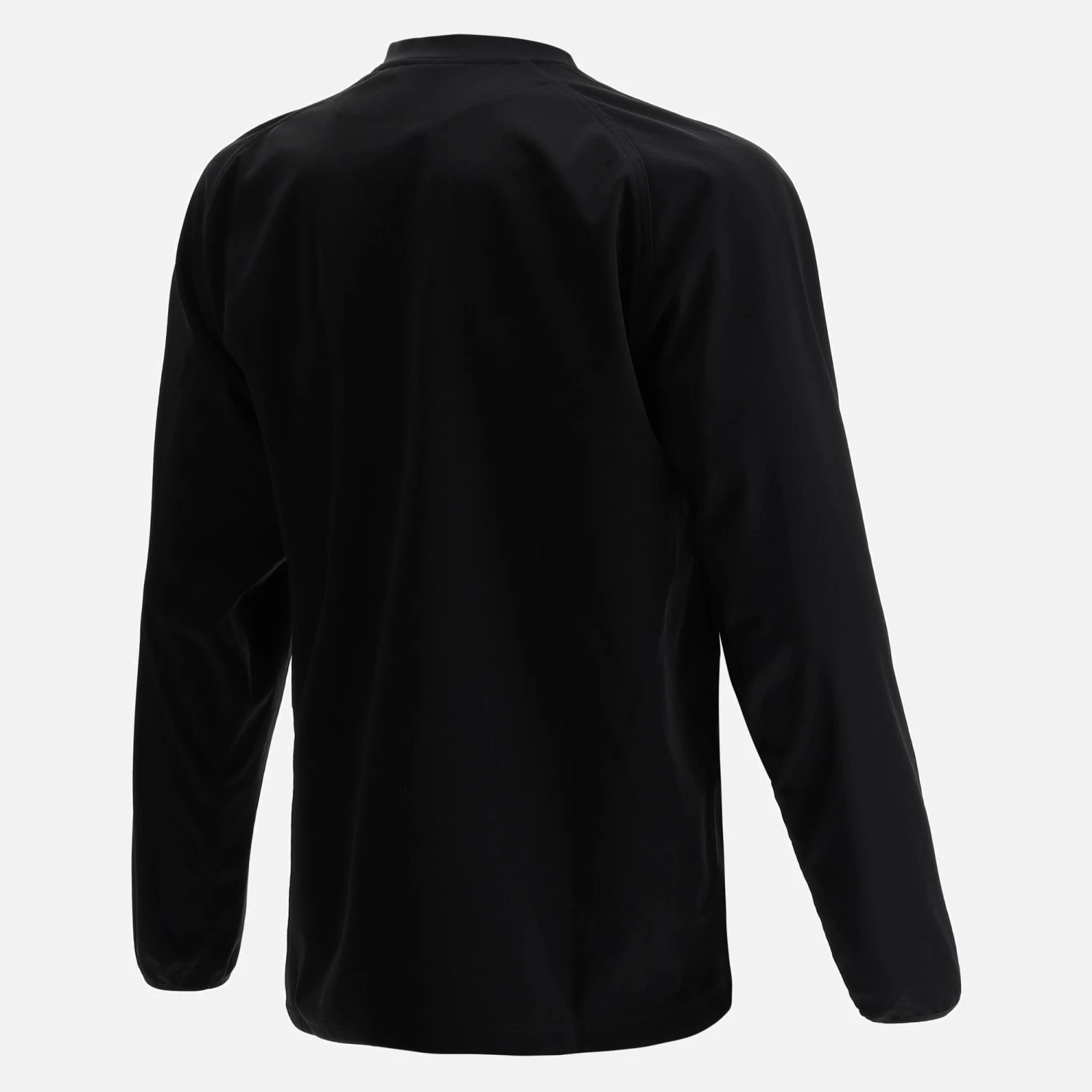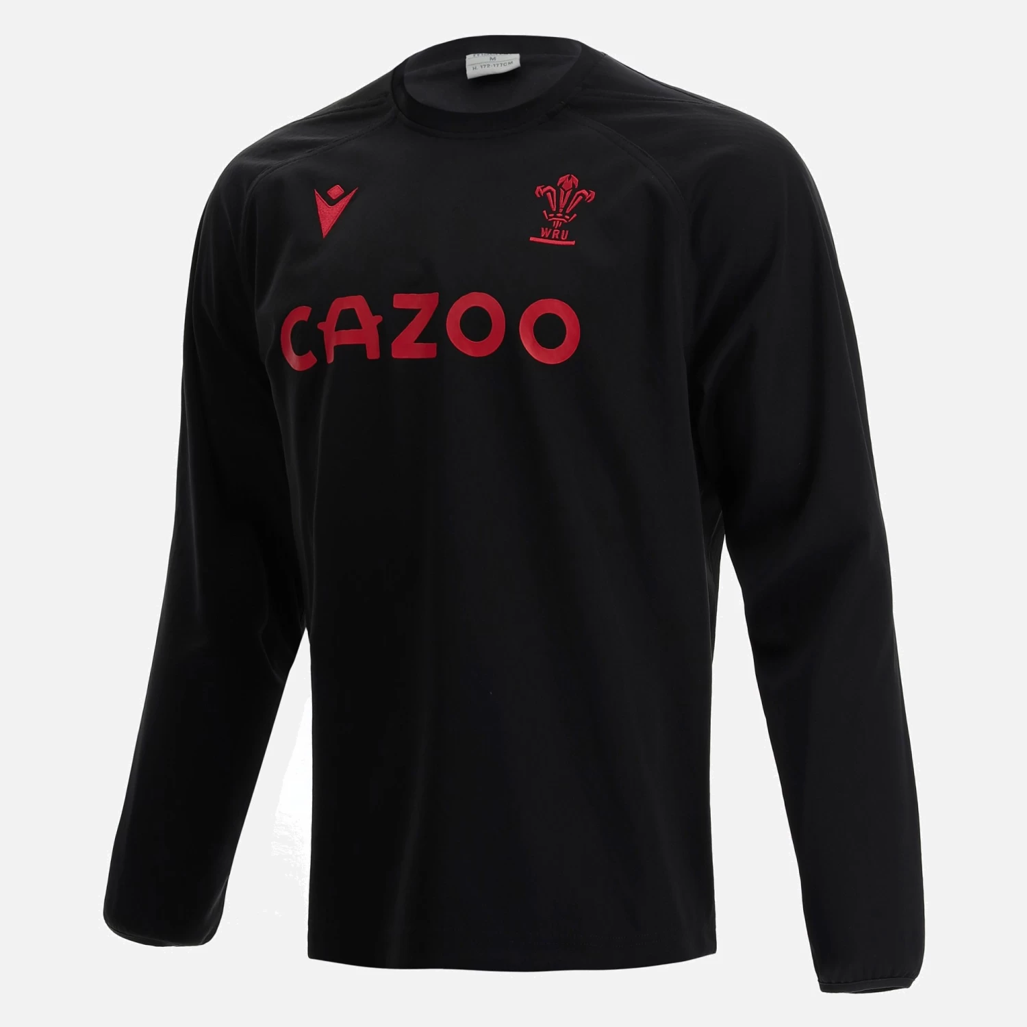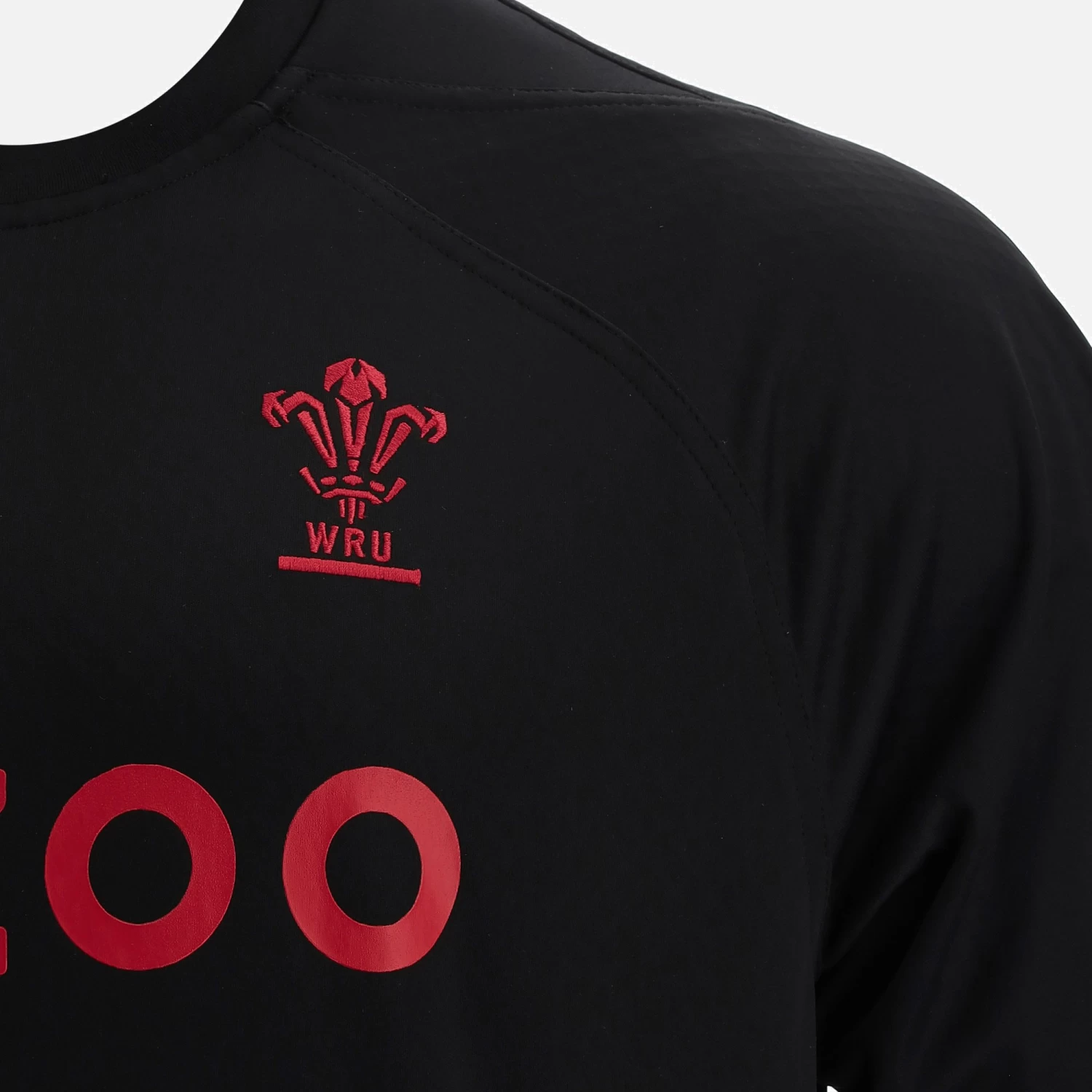 Black rugby contact top with red printed Welsh Rugby crest and logos.