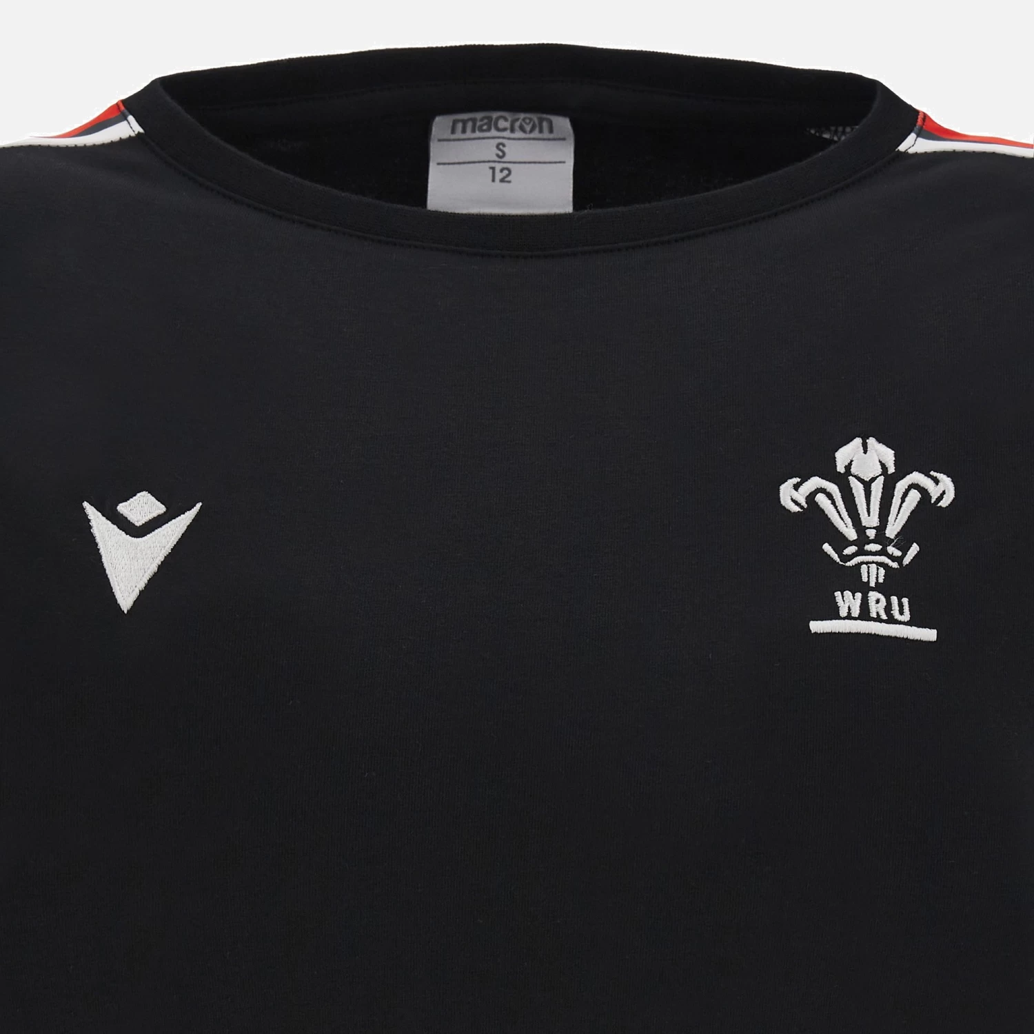 Black polycotton tee with red panels over the shoulders, white piping and embroidered Welsh Rugby crest.