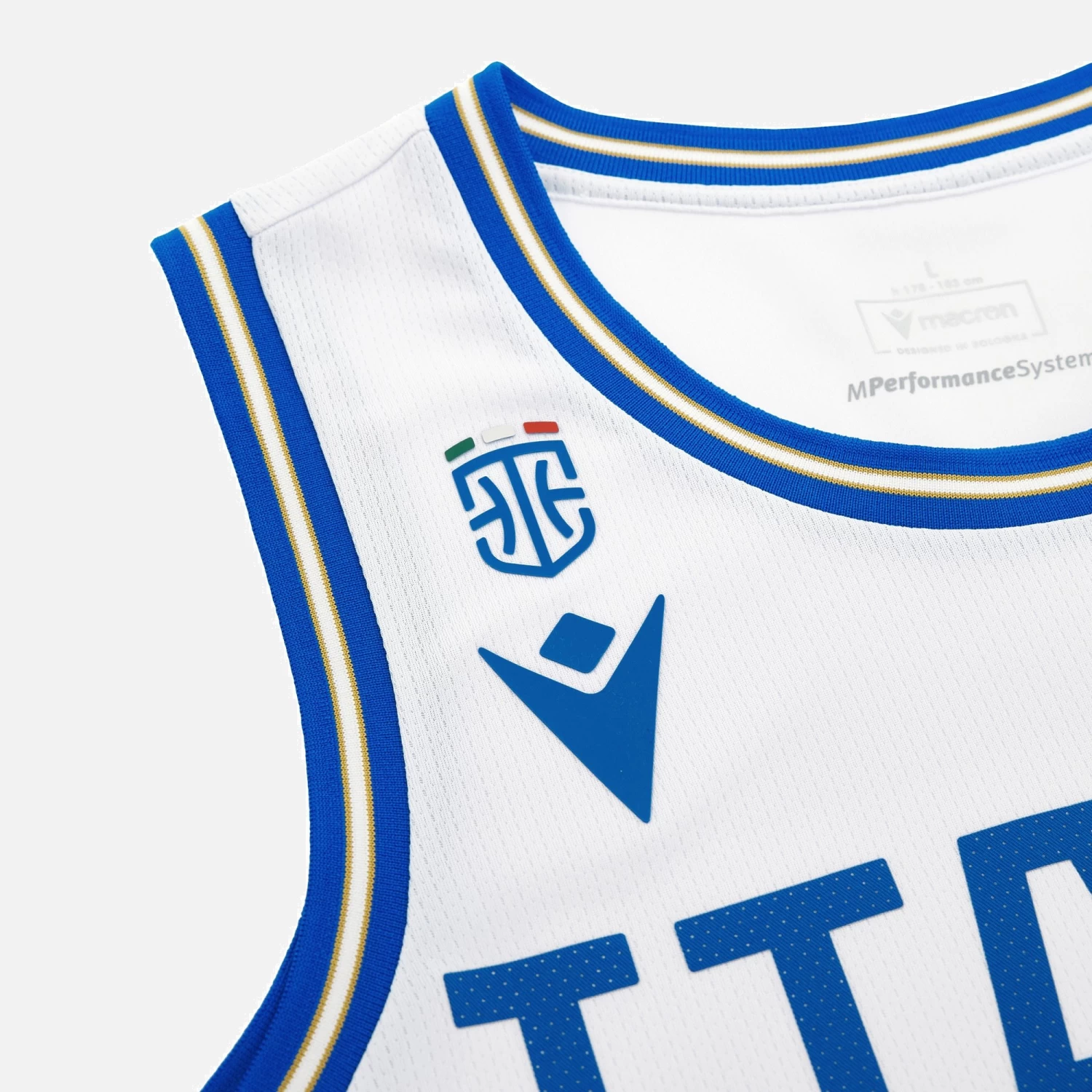 Kick off an exciting season with the new Italbasket away vest for the World Cup 2023. Made from Eco Fabric with mesh inserts, it will guarantee coolness and breathability throughout play. Further enhanced with stylish gold and dark turquoise-blue details like the Macron Hero, collar and armholes. Wear it and you too can feel like you’re part of the Italian national basketball team!